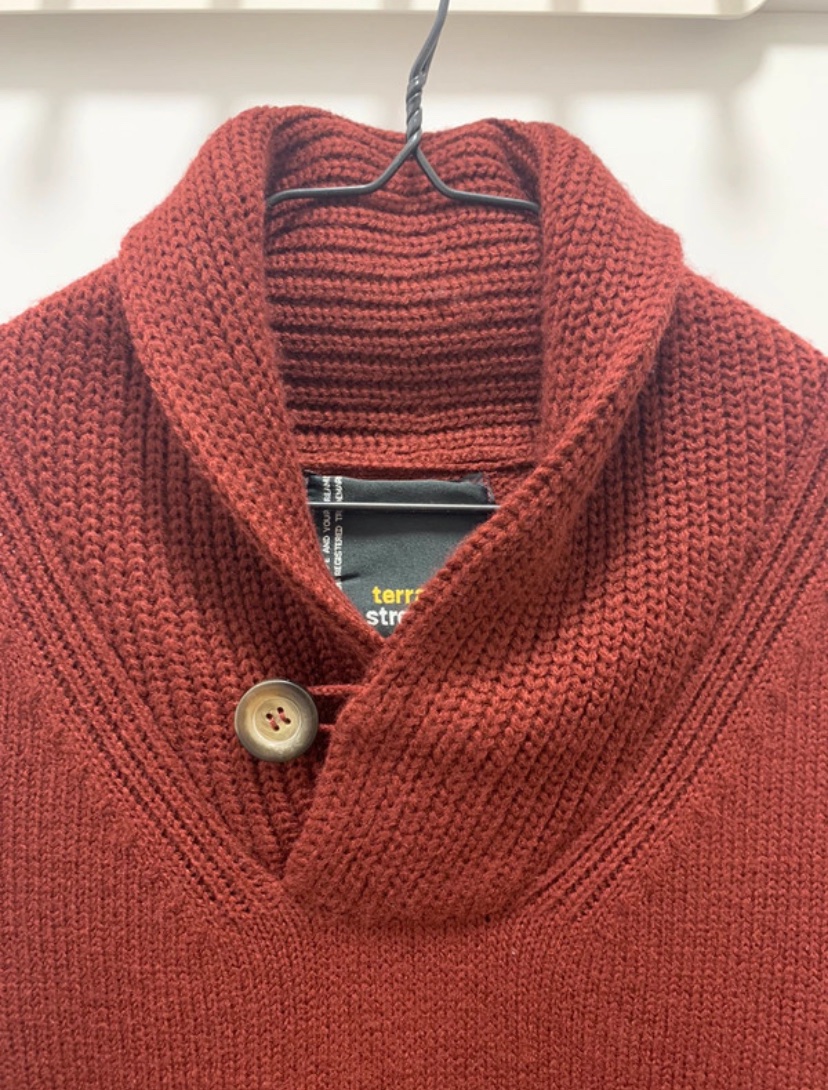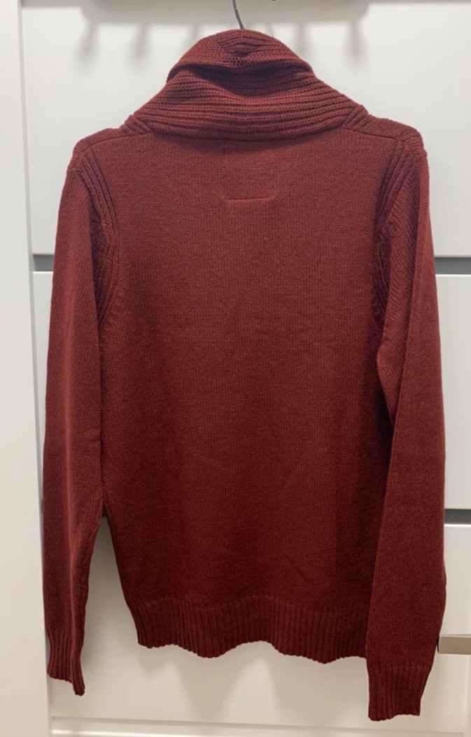 Bordový pulóver so stojačikom a ozdobným gombíkom značky Terranova.