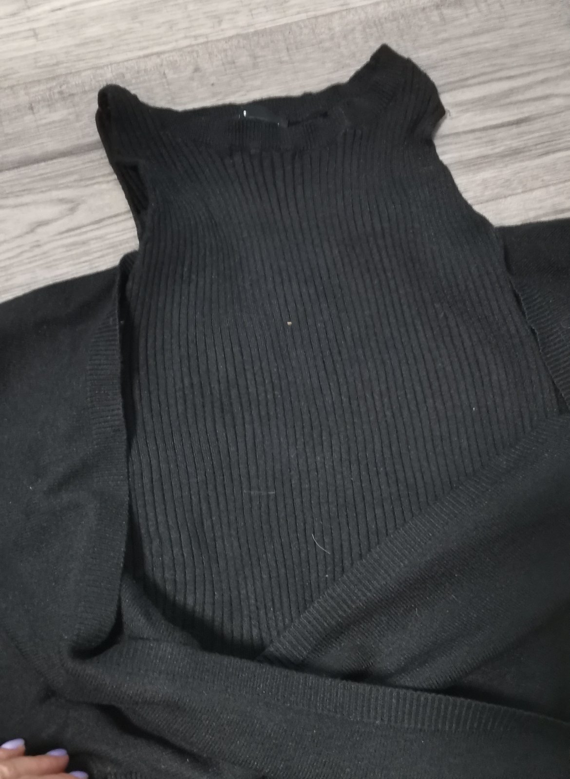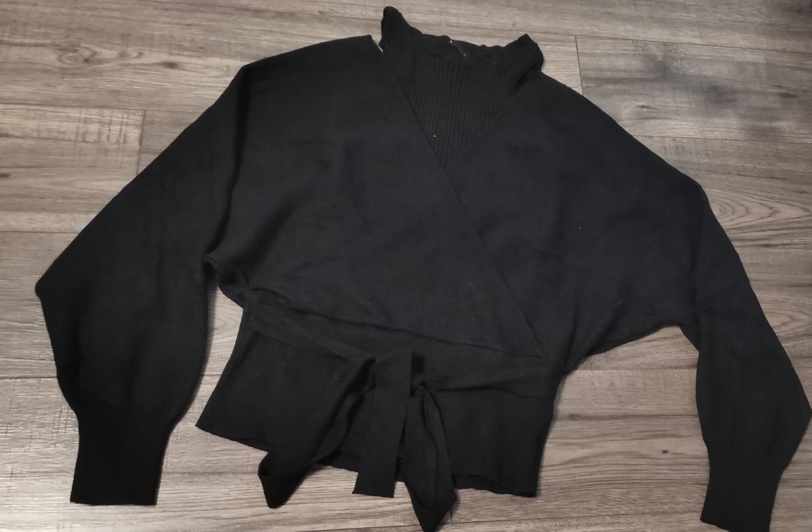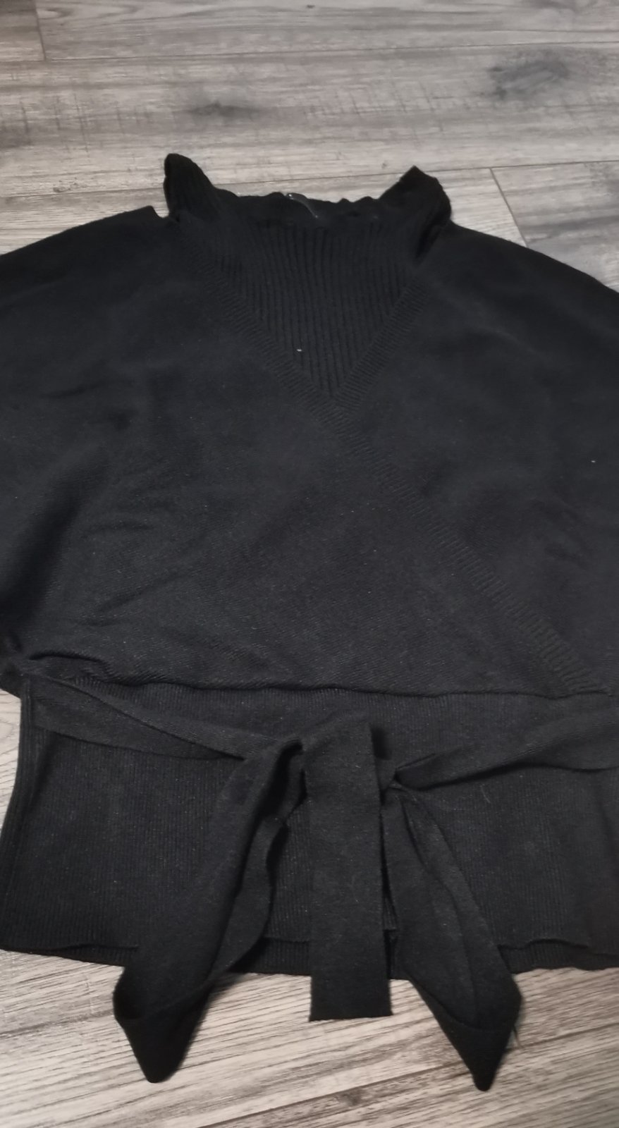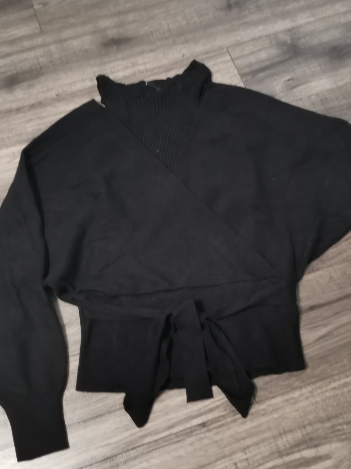 pulovrik do pasa, s ozdobnym zaväzovanim, so všitym tielkom, oblečene 2x, bez poškodenia, šírka tielka,2x 40cm, dĺžka 58cm, rukav od krku 67cm, elasticky