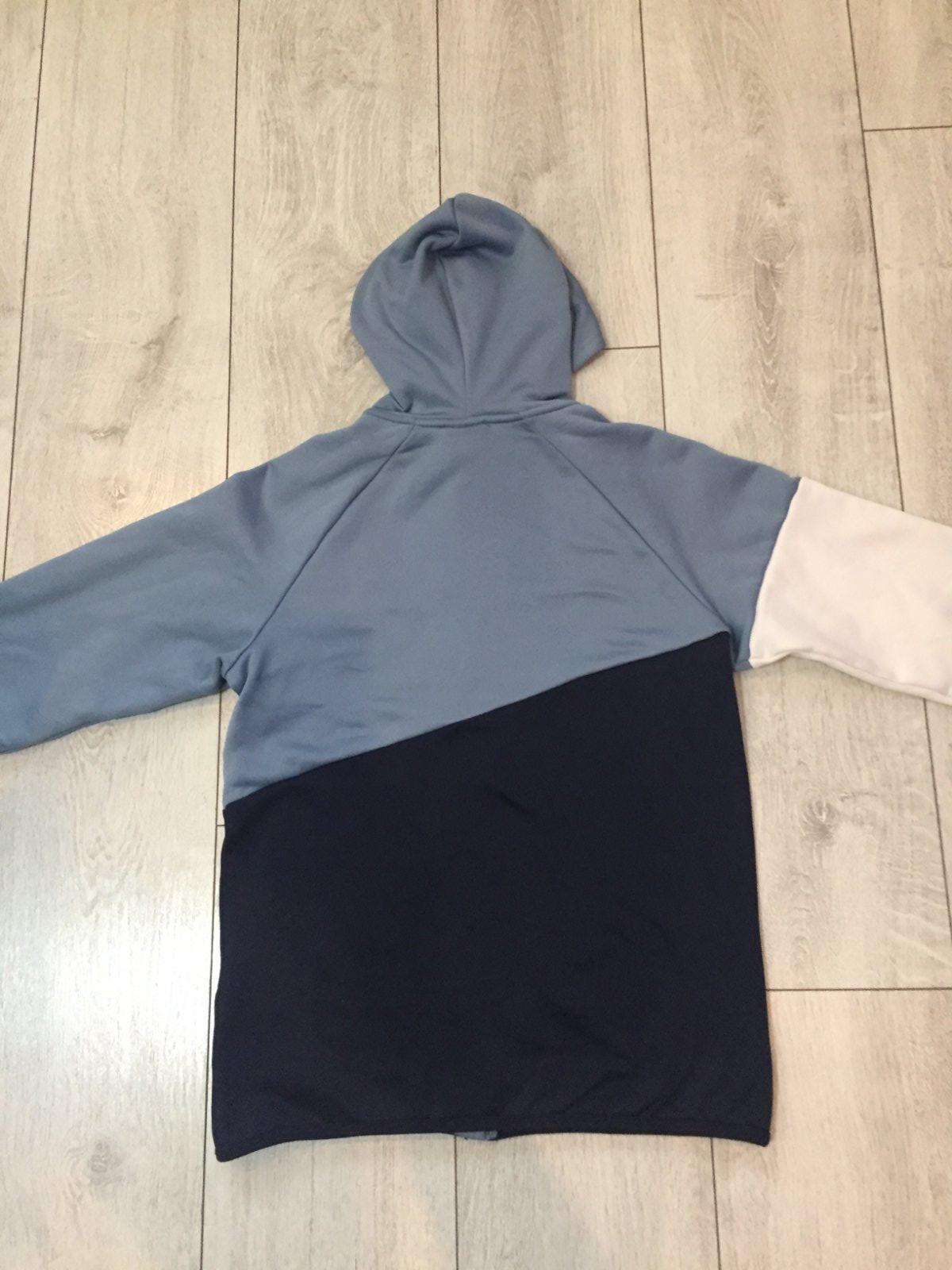 Mikina ma na chrbte žmolky, inak OK. Velkosť 146/152. Dlžka 57cm, širka cez pazuchy 44cm, rukav od krku 63cm.