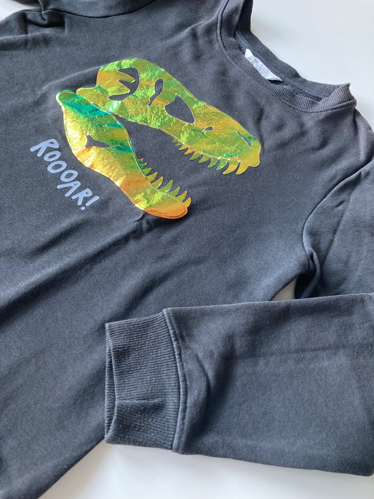 Mikina s trblietavým dinosaurom, pekná zachovala