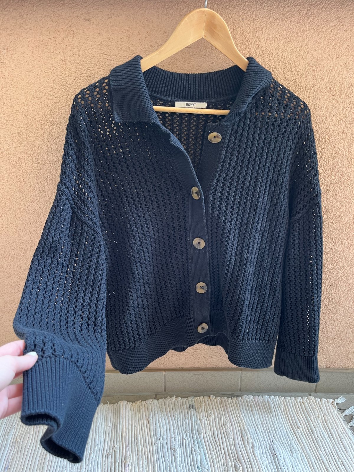 Pletený sveter na gombíky značky Esprit. Má pekný oversize strih. Sedí na L/XL.