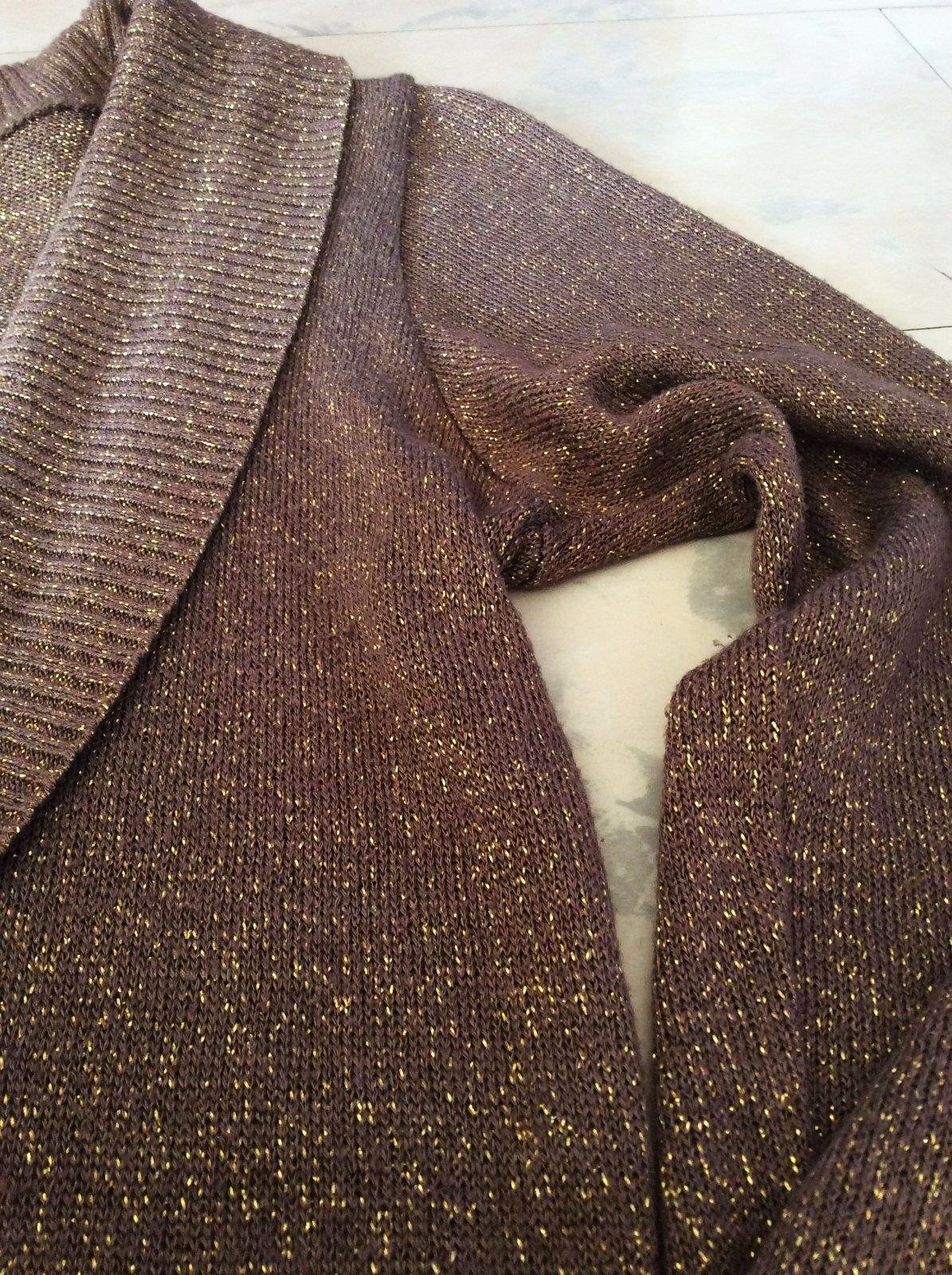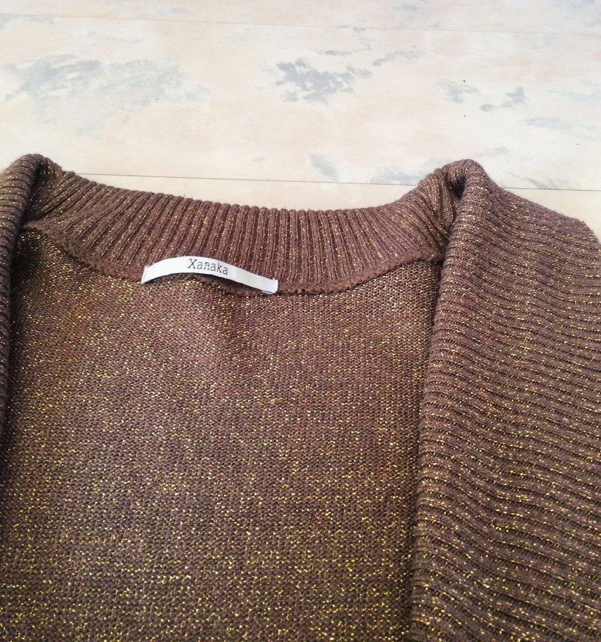 nevšedný typ pulóvrika v studenom odtieni hnedej,skoro nenosený,zaujímavý,jemne pretkaný zlatým lurexom,dlhší,super k legínkam,výstrih je väčší,najlepšie s topom,tielkom alebo na body,alebo s pekným jemným šálikom....