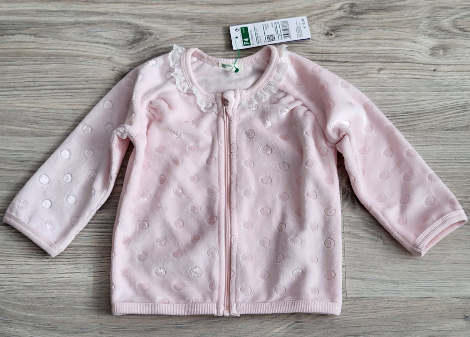 Zamatová mikina na zips Benetton 74 na 9-12 mes.