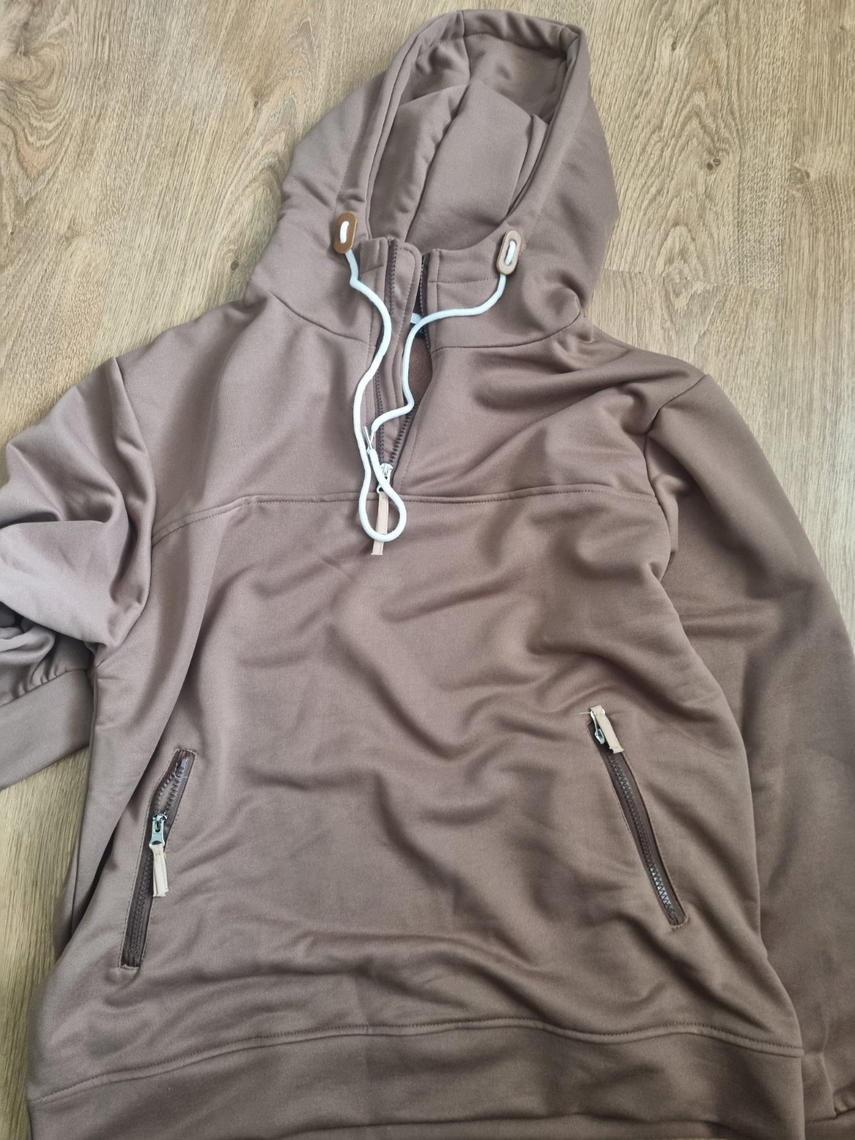 Veľmi pekná trošku zateplená mikina so zapínaním na zips. Vpredu sú vačky, rukávy sú na manžety. Má malý stojací golier. Na zadnej strane malá aplikácia. Super príjemný materiál- bavlna. Bez poškod...