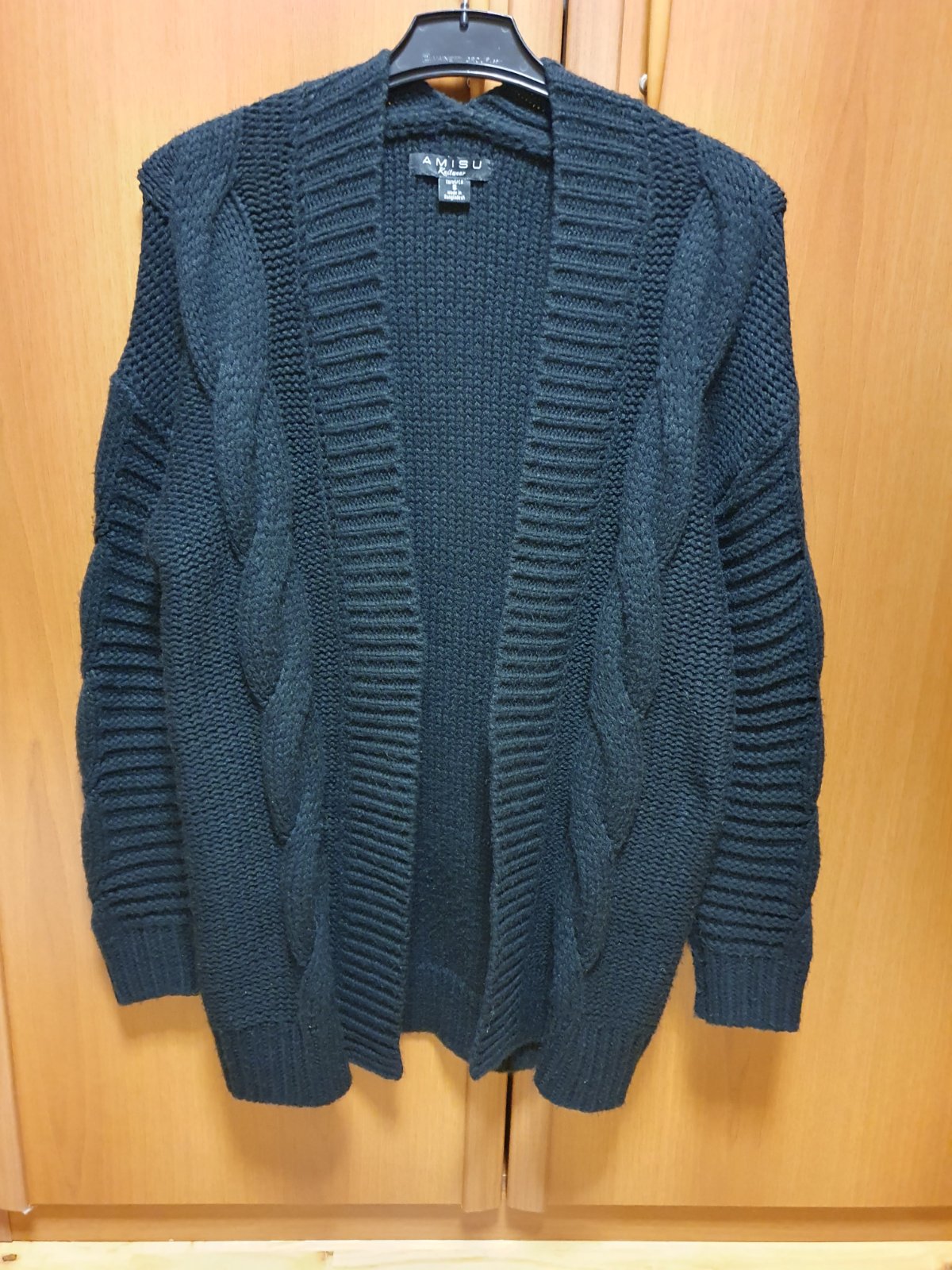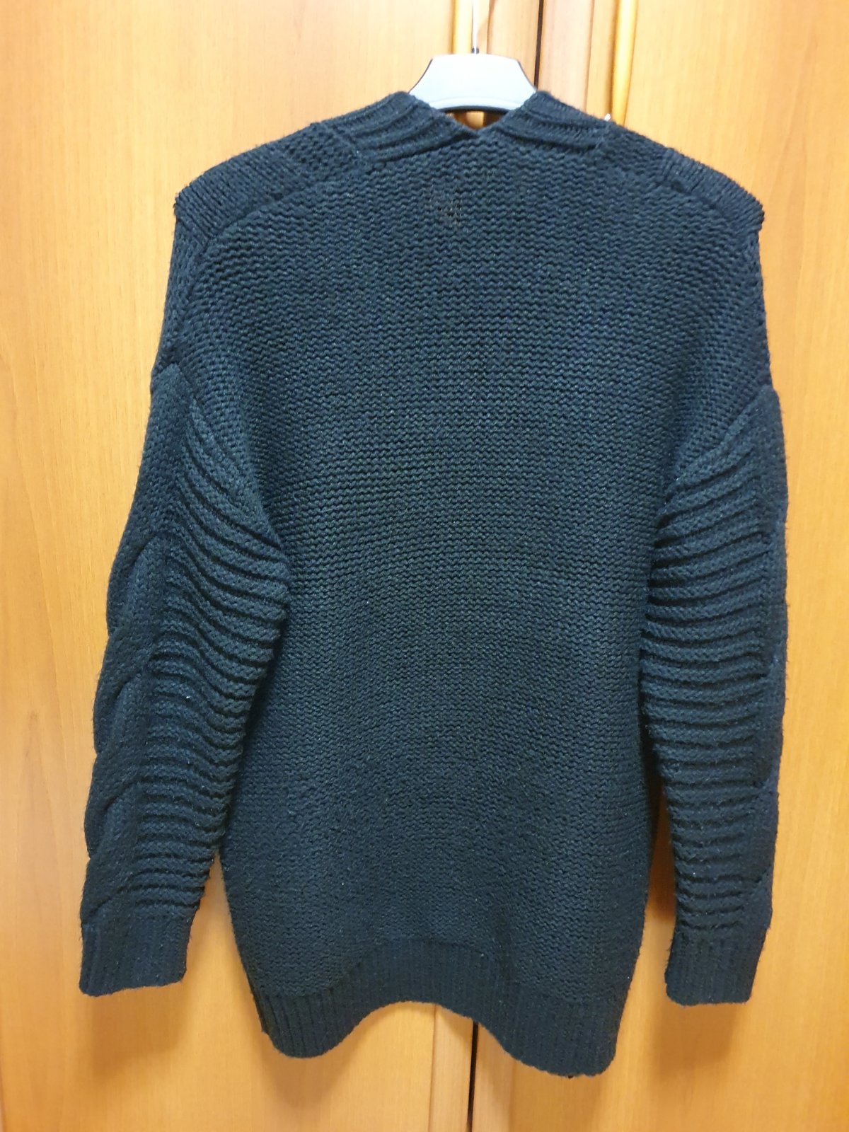 Zimný pletený sveter, bez gombičiek. Hoci je na štítku uvedená veľkosť S, je to M. Dl. 72 cm, š. 46 cm, na výšku 166-170 cm.