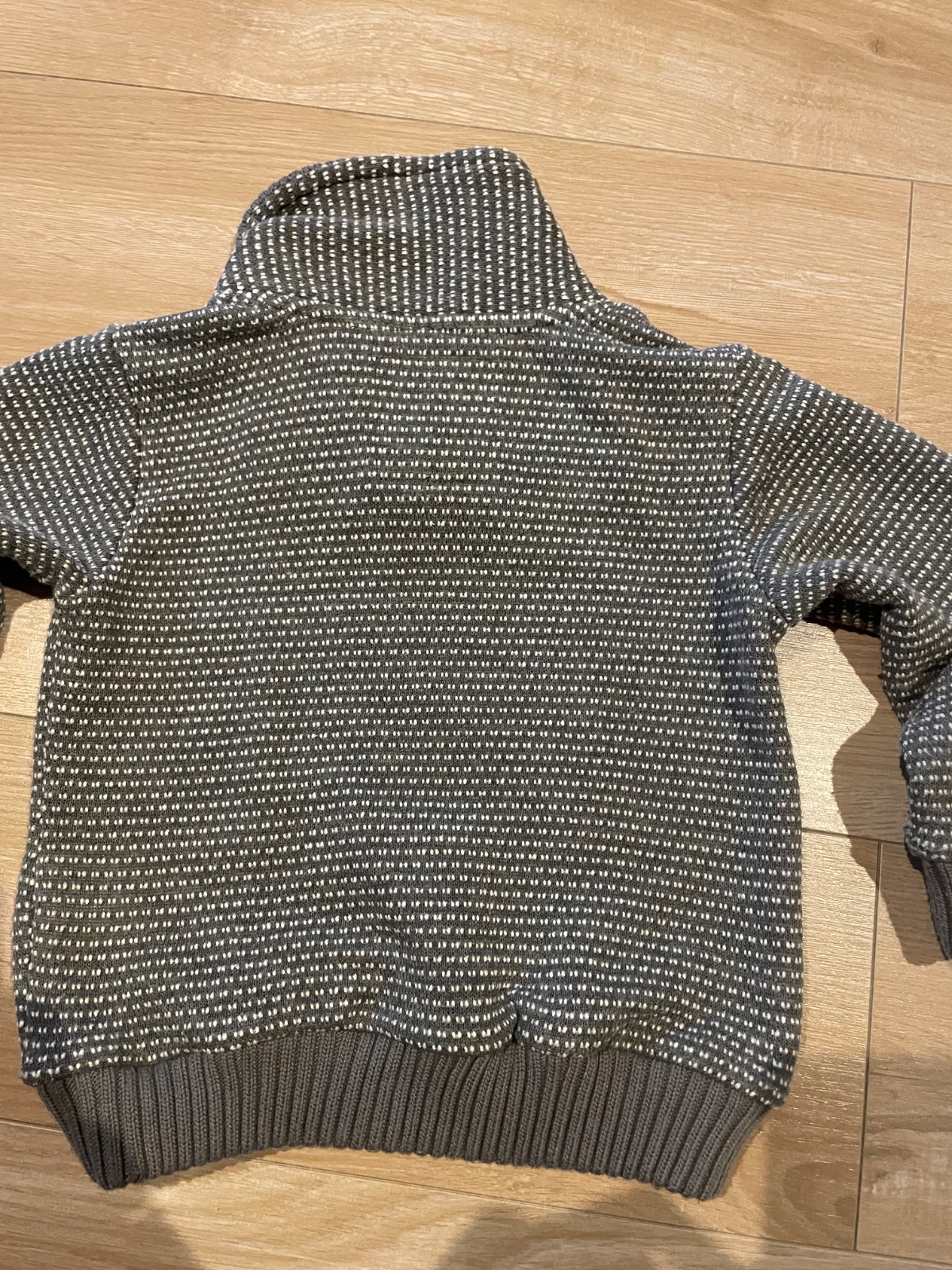 Tenký svetrík pre malého fešáka vo veľmi dobrom nosenom stave (bez dierok, fliačikov a žmolkov; jemnulinko spratý). Jednoduchý strih; zapínanie na zips. Značka: Mayoral; veľkosť: 98 (2 - 3 roky). ...
