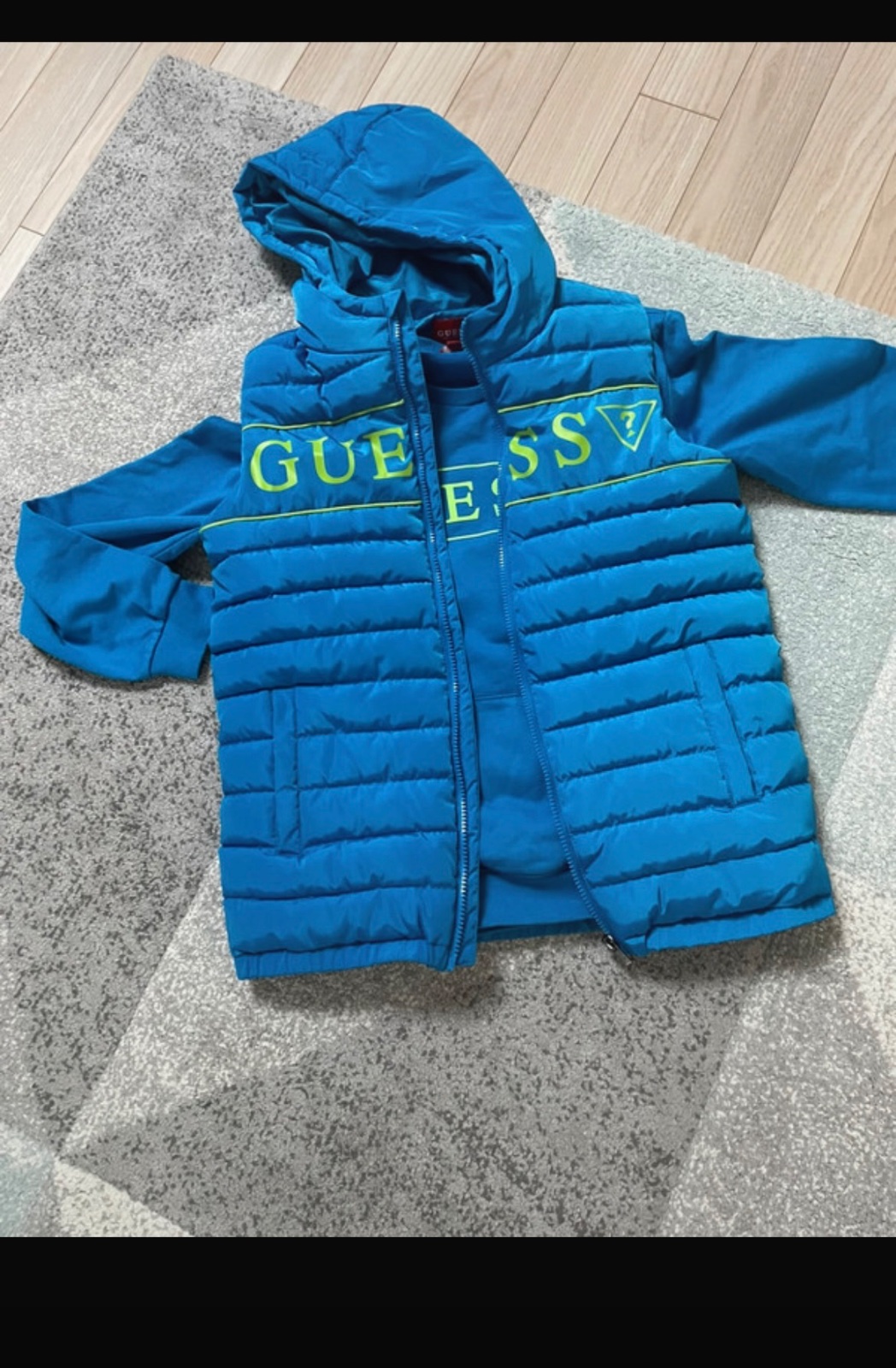 Predám, oblečené asi 2x, pekná farba, 100% stav. Vesta nebola ani prana. Mikina nie je vnútri pocesana.