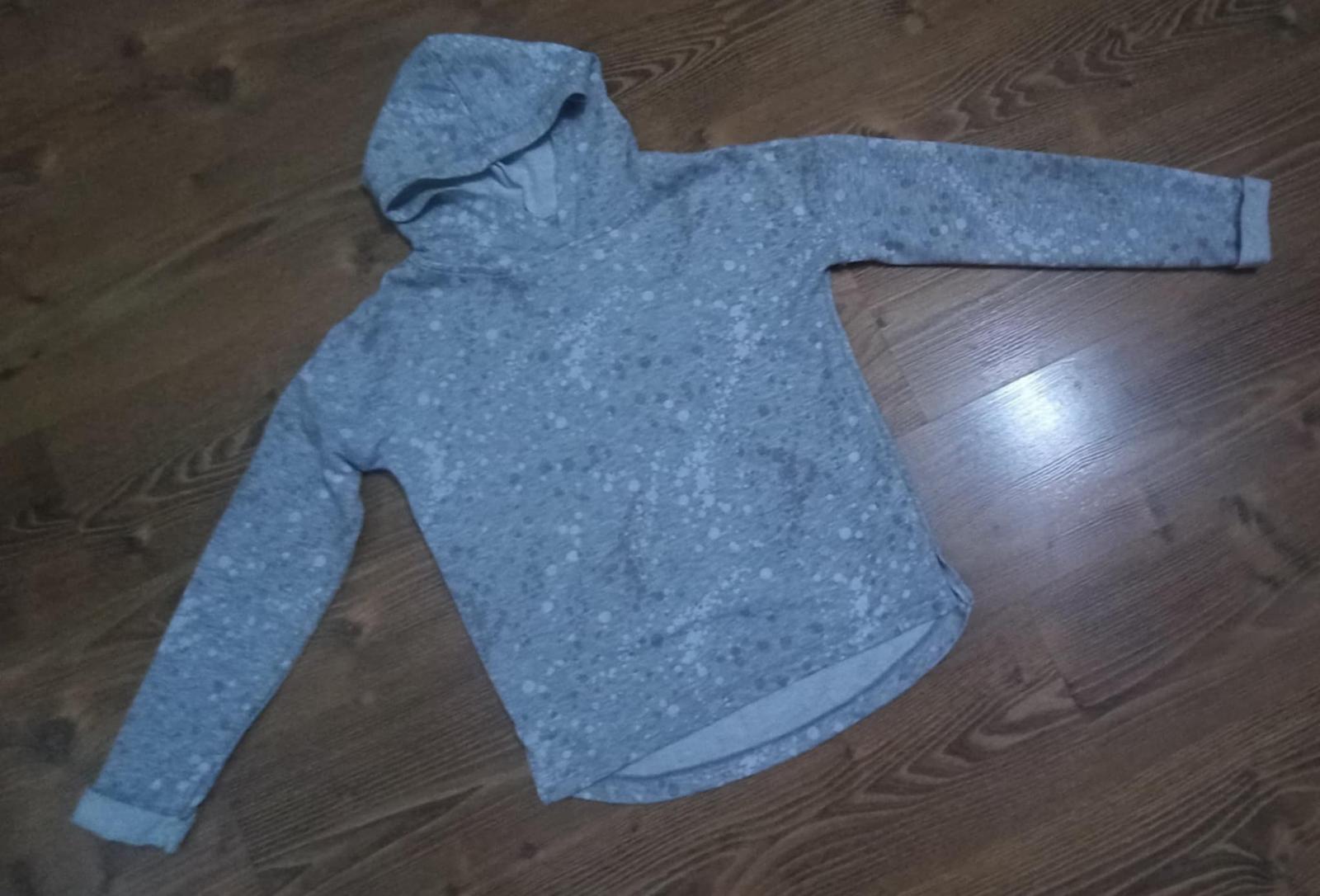 Dlhá 62 cm zadná , predná 57cm, šírka pod pazuchou 53cm x2, spodok 44cm x 2, rukáv 48cm.