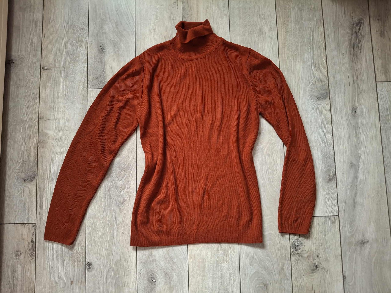 krasny predlzeny rolak oversize strih , sedi perfektne, velkost L, hnedo zlty ihned k odberu