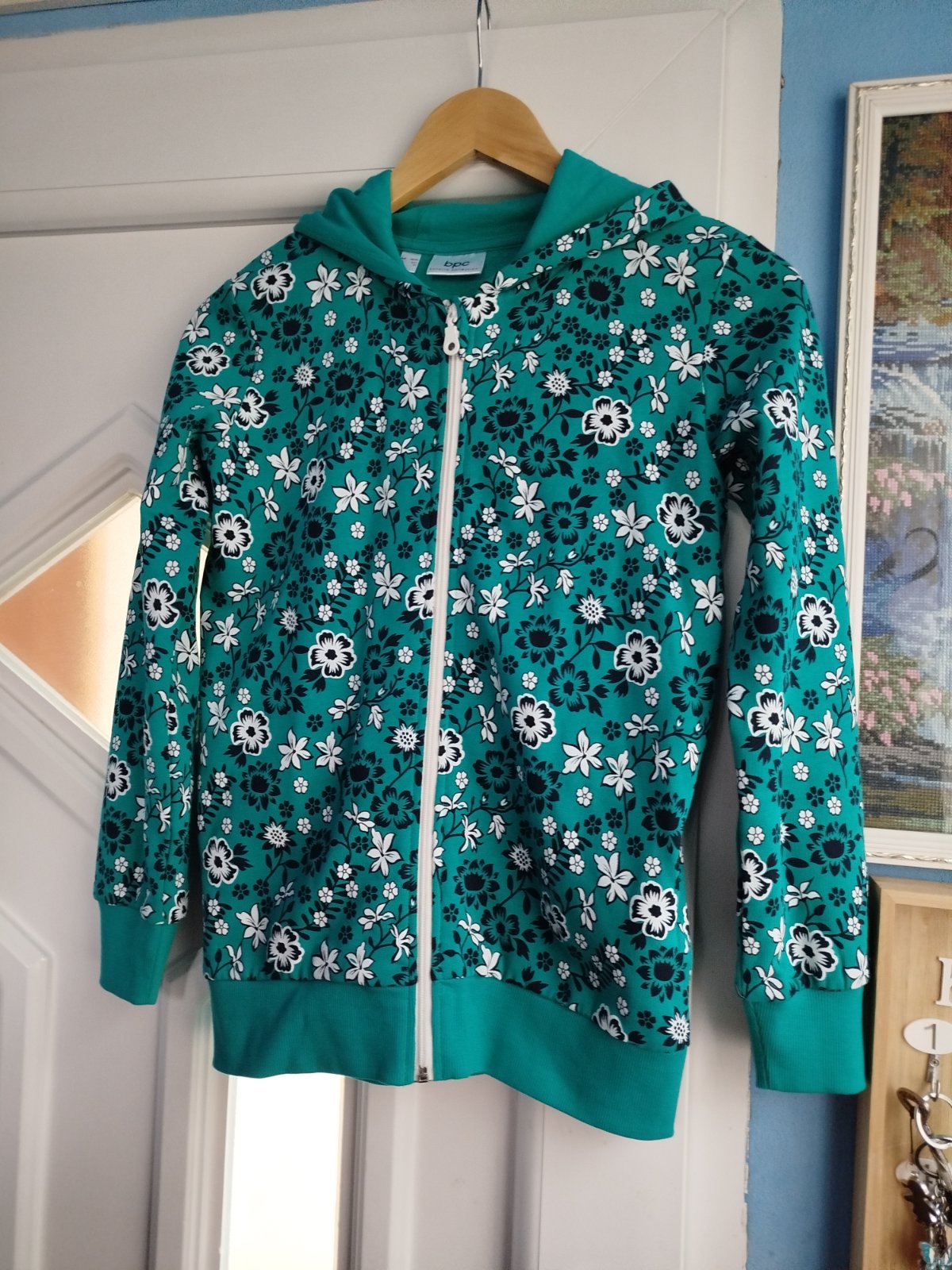 -krasna, hrubá bavlna, nosena raz, zabudli sme na ňu, úplne ako nova, velmi pekná, kupovana za 14,99e