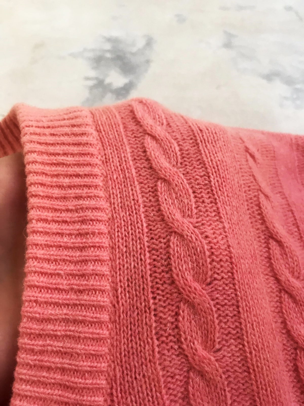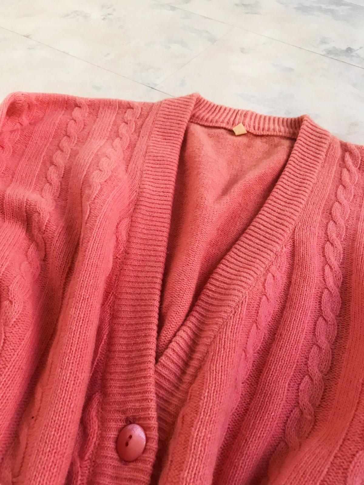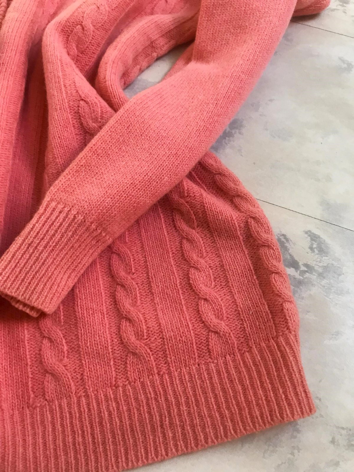 krásny vlnený svetrík,nový - iba prepraný po skladovaní,obsahuje vlnu 80 %, angoru 20 %,krásna lososová jemná farba,dlžka 65 cm, šírka 52 x 2 cm,rukáv vonk. dlžka 67 cm a vnut. dlžka 50 cm,uvedená veľkosť M ,ale podľa rozmerov asi na L/XL