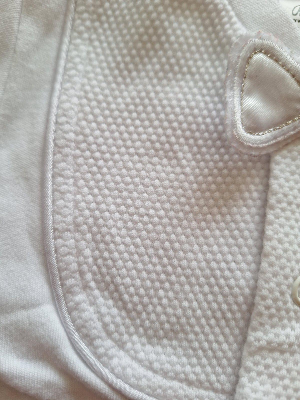 Svetrík na zapínanie so vzorom macíka, biely s hnedou farbou, veľkosť 6-9 mesiacov, materiál bavlnka, nepichľavý, top stav, cena 10,-€