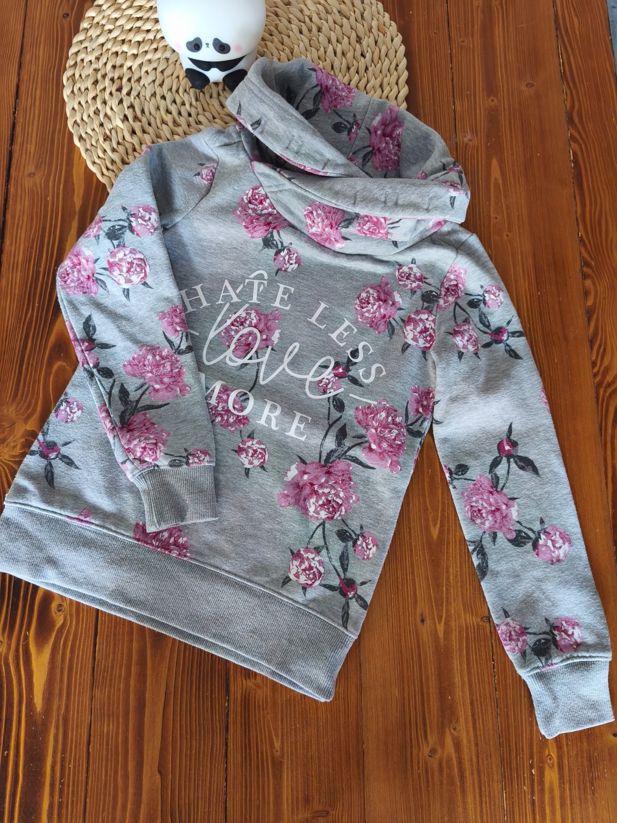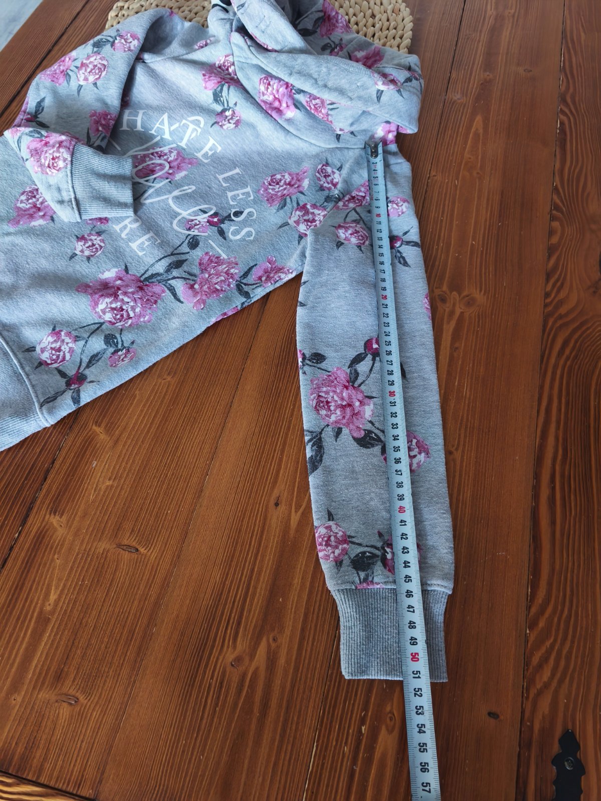 Teplejšia mikinka v top stave. Málo nosená, nakoľko sme ich mali viacej. Veľkosť je síce uvedená 134/140, no nositeľná už od 128. Rozmery uvedené na foto.