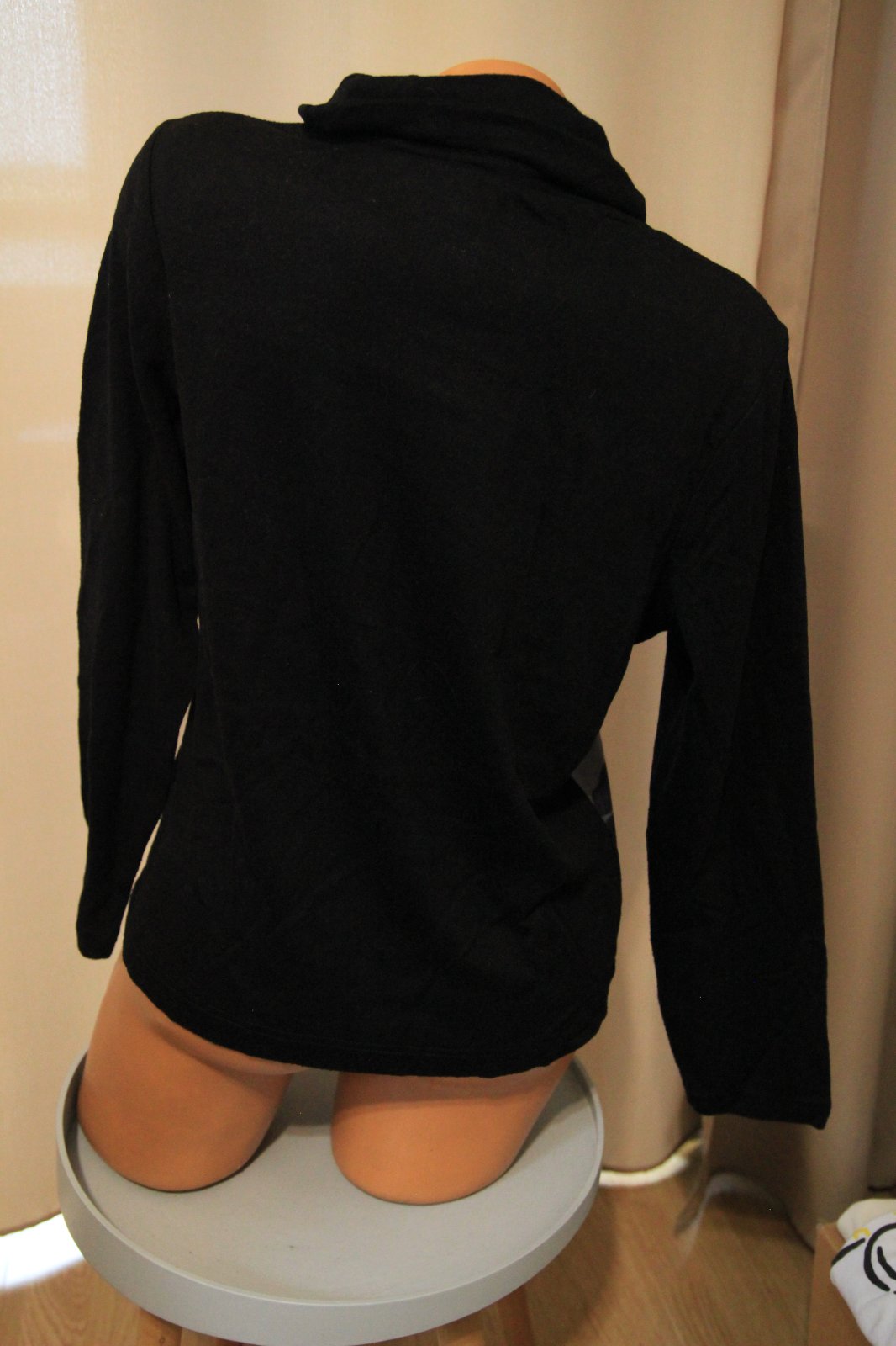 Čierny kvietkovaný rolák, príjemný materiál. Vpredu sú kvety zadná strana a rukávy sú čierne. veľkosť XL.
