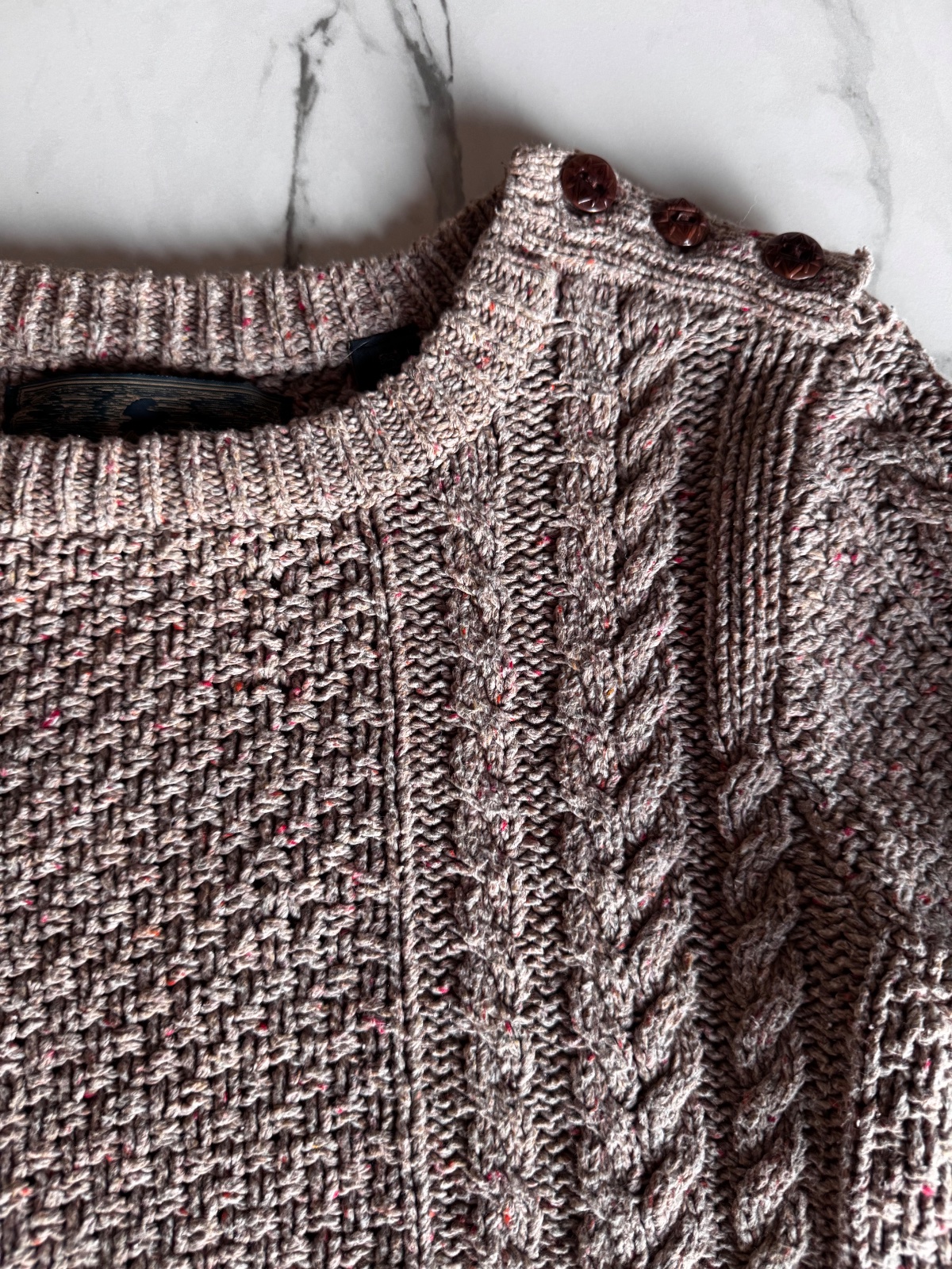 Nádherný sveter kombinácia kávovej farby s ružovými vláknami