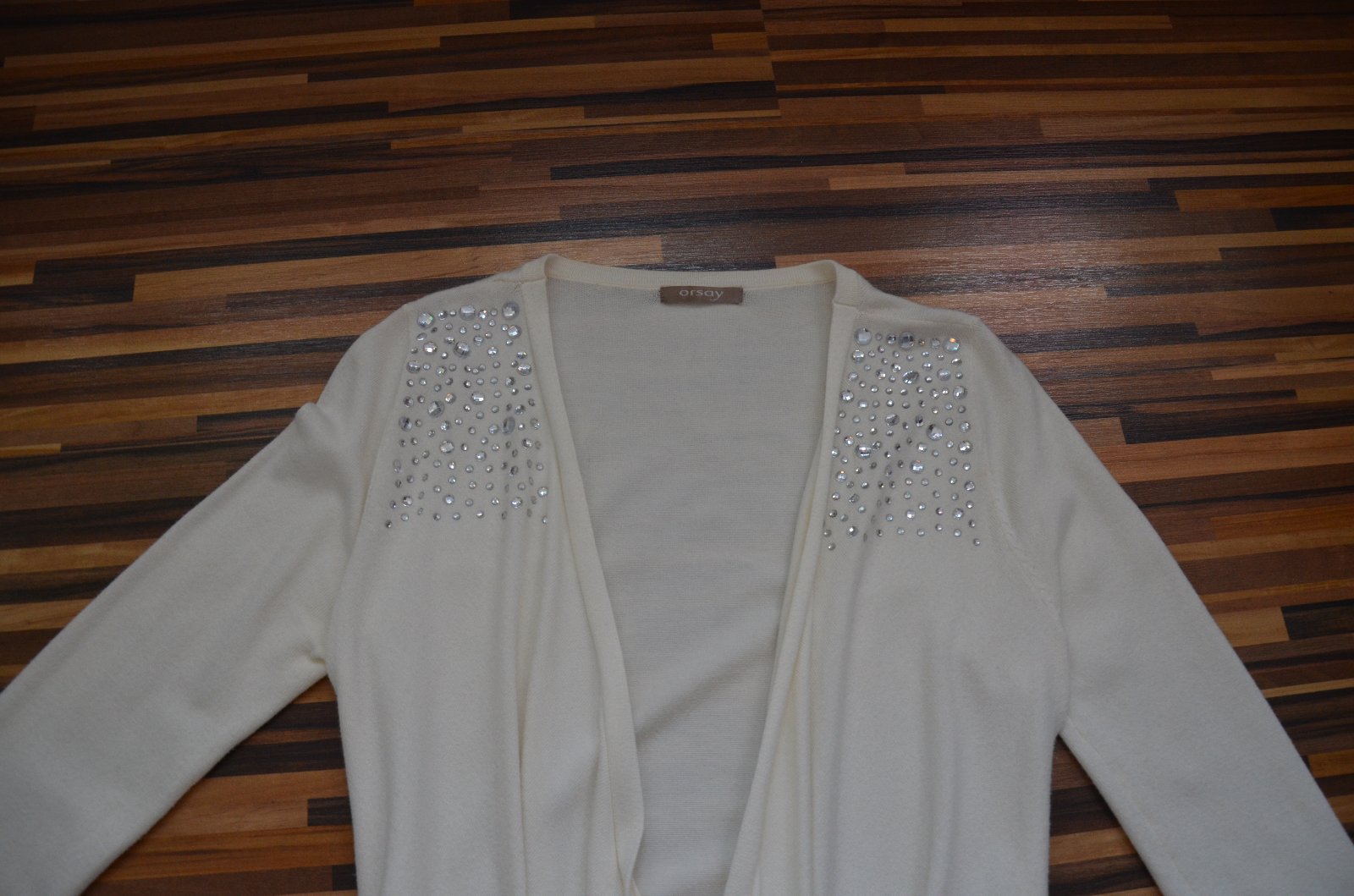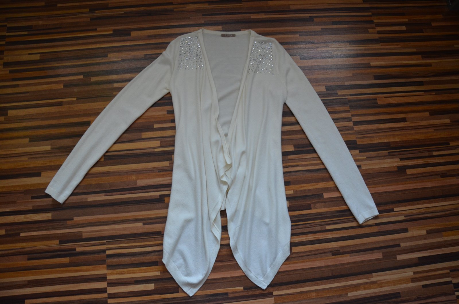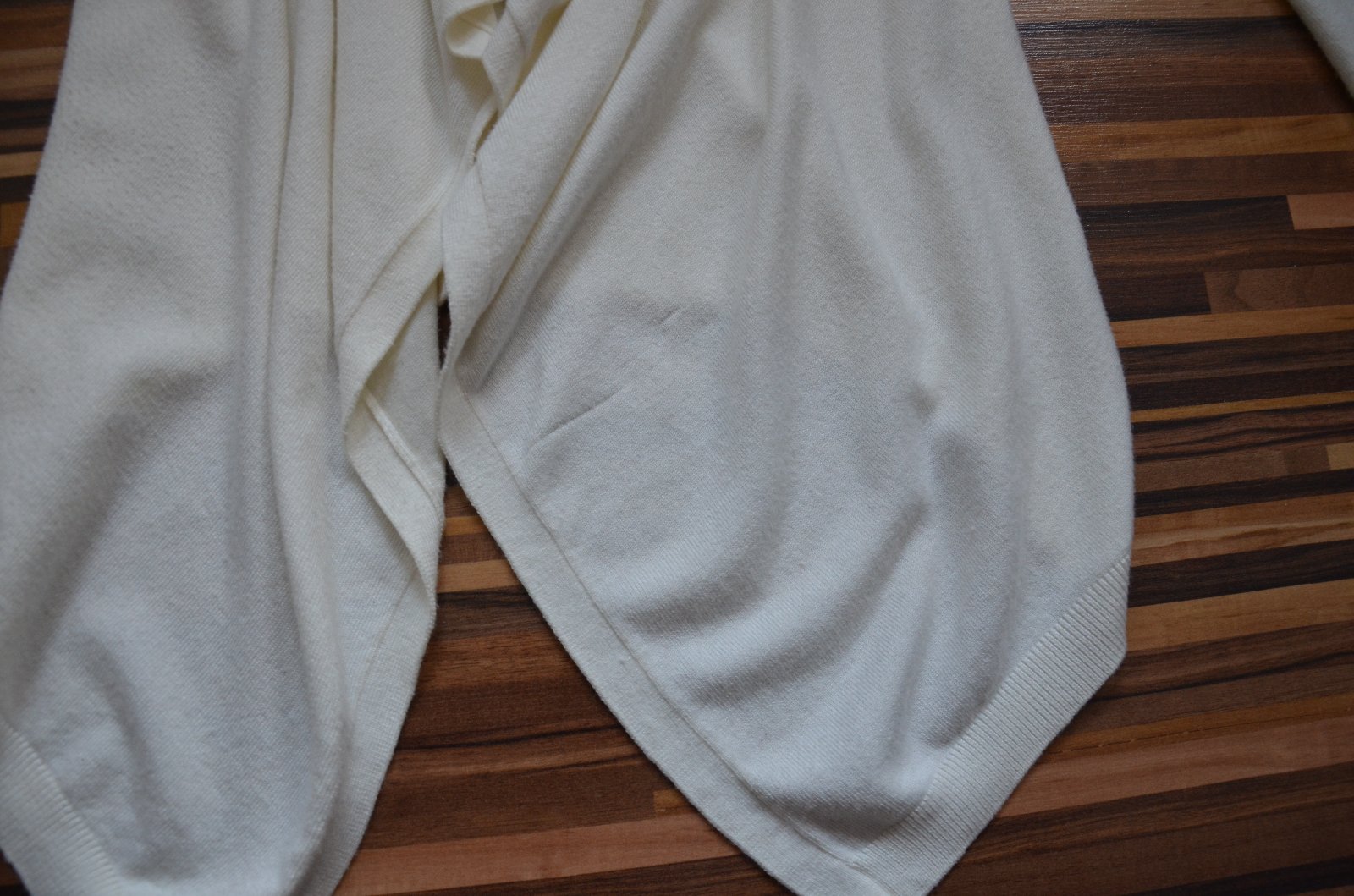 Bielo-kremova farba, mala chybicka na prednej strane, ale nie je vidno pri noseni. sirka pod pazuchami 38 cm, dlzka zadny diel 62 cm, vpredu je dlhsi.