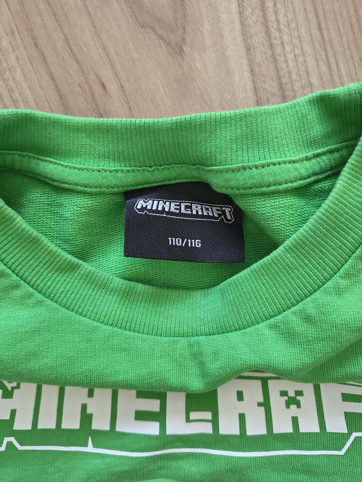 Tenšia mikina s potlačou Minecraft, nosená veľmi málo, nepoškodená. Veľkosť 110/116, dĺžka 47cm, šírka 2x35cm, rukáv od ramena 39cm.