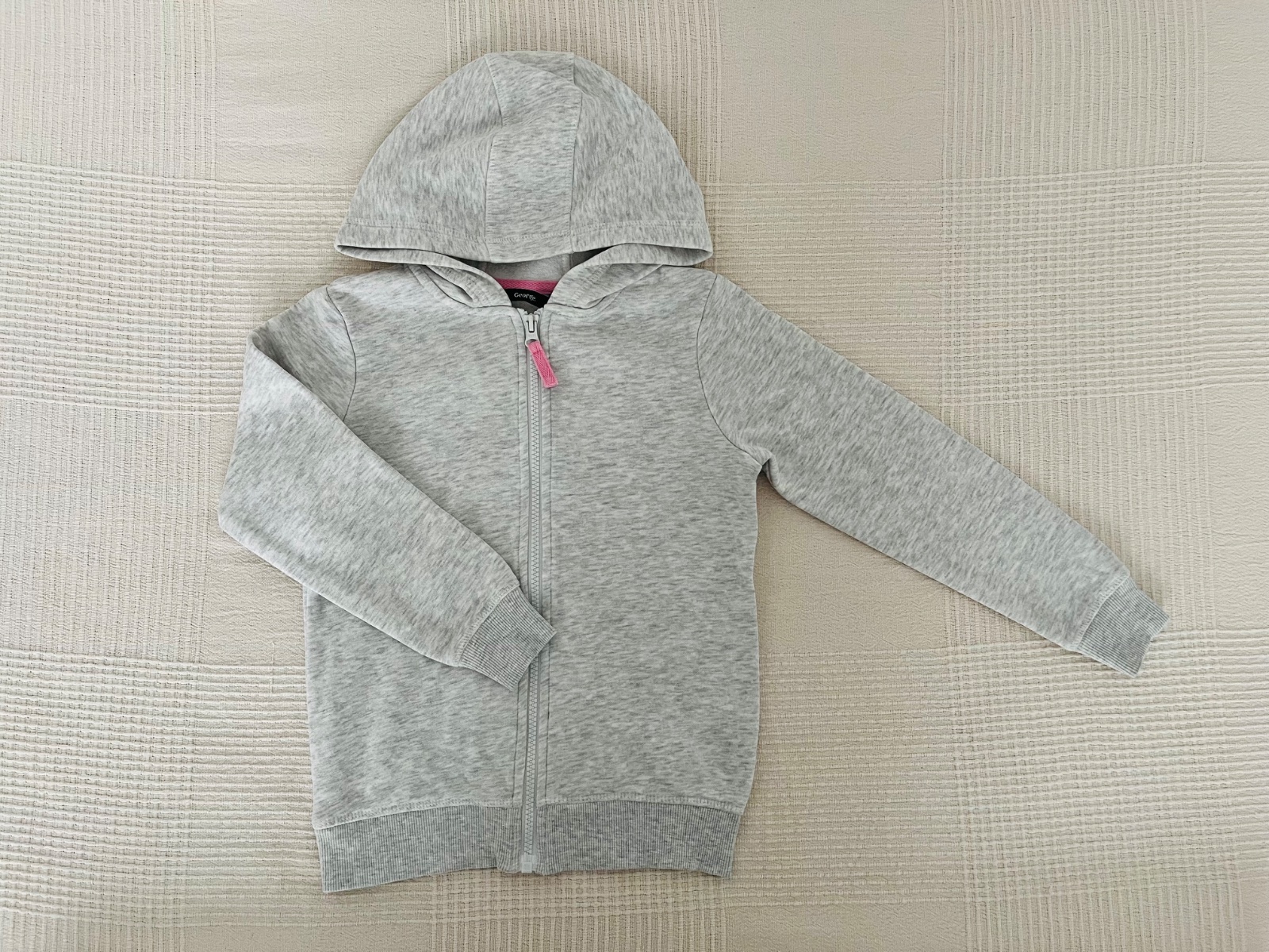 VYNIKAJUCI STAV - Mikina s vnutrom z cesaneho materialu,zn.George, velkost 122/128. Je vo vynikajucom stave, bez poskodeni, kupovana nova a nosena iba mojou dcerkou.Vdaka neutralnej farbe lahko zladite k hocicomu.