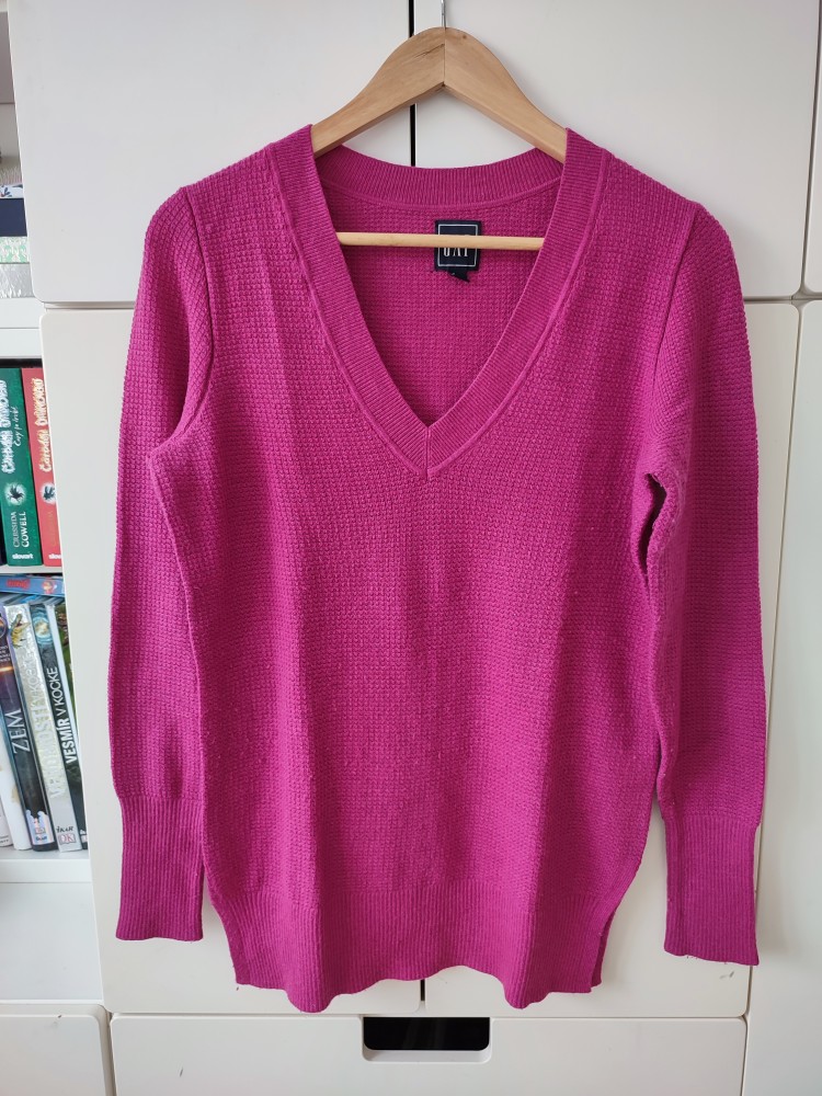 nosený pulóver, 30 % merino, príjemný, sedí na S-M, hoci je písaná veľkosť XS, Gap má väčšie oblečenie. v peknom nosenom stave bez poškodení.