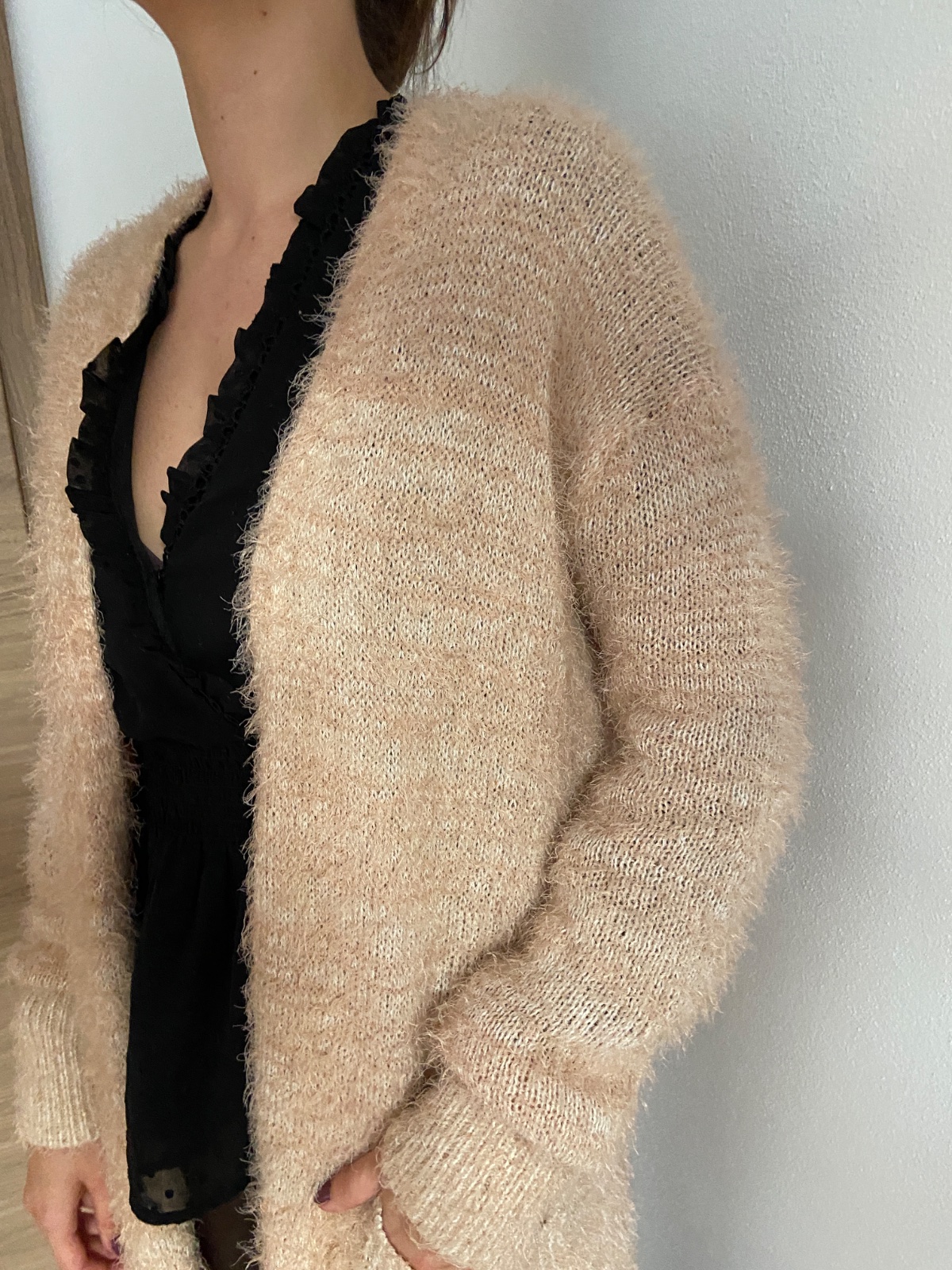 Máličko nosený, naozaj príjemný a teplučký kúsok. Sedí skôr na M. Farba je skôr do ružova