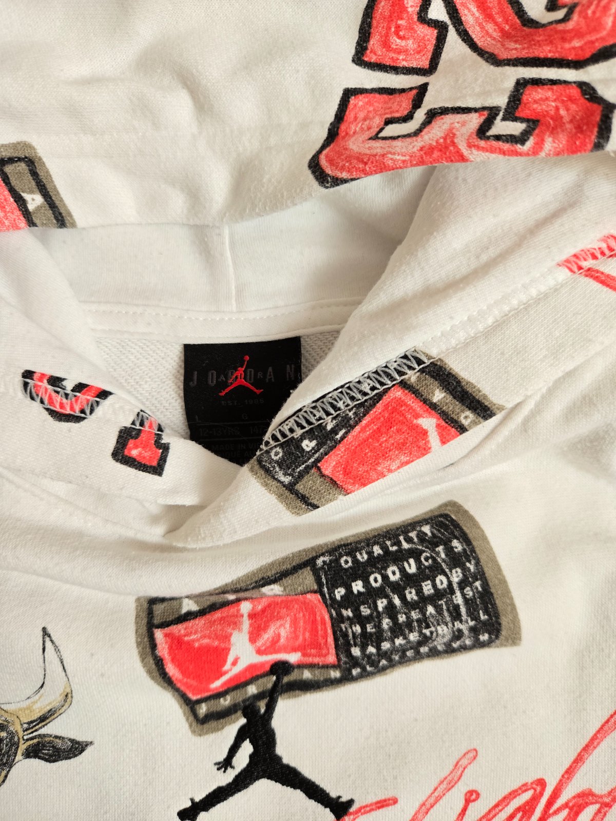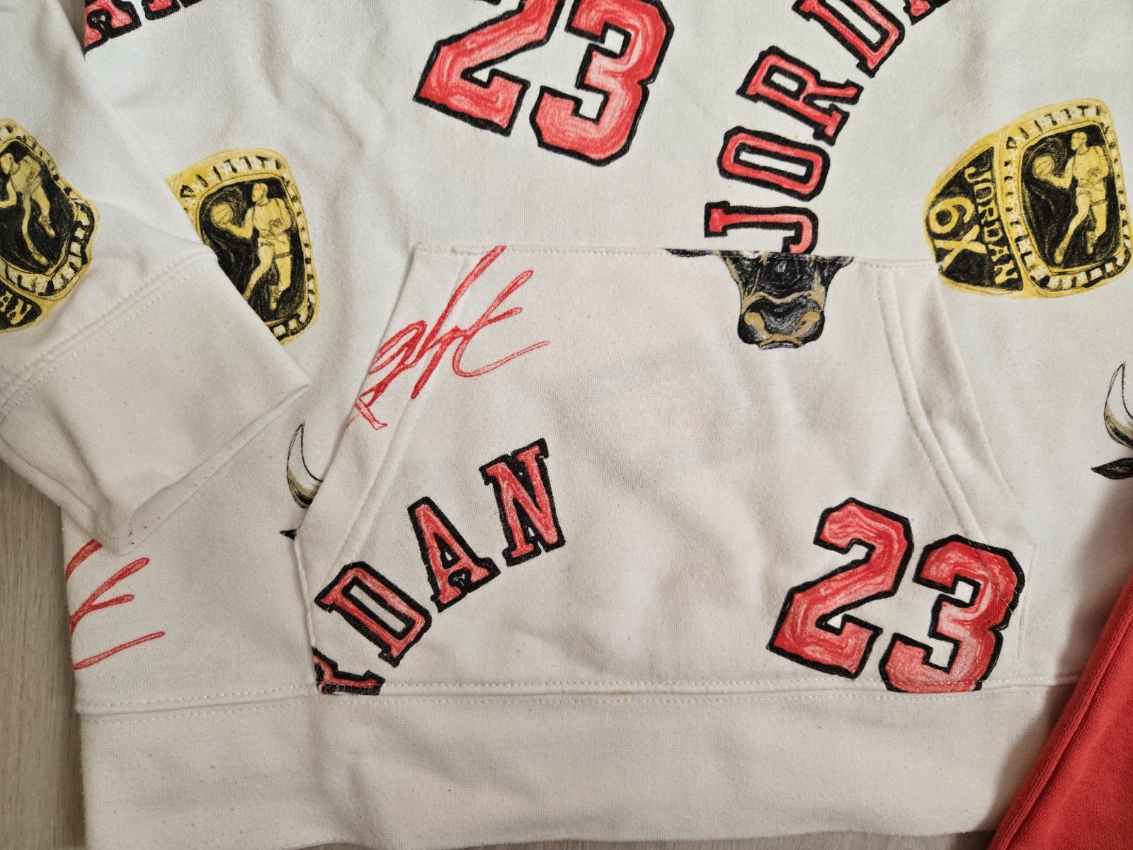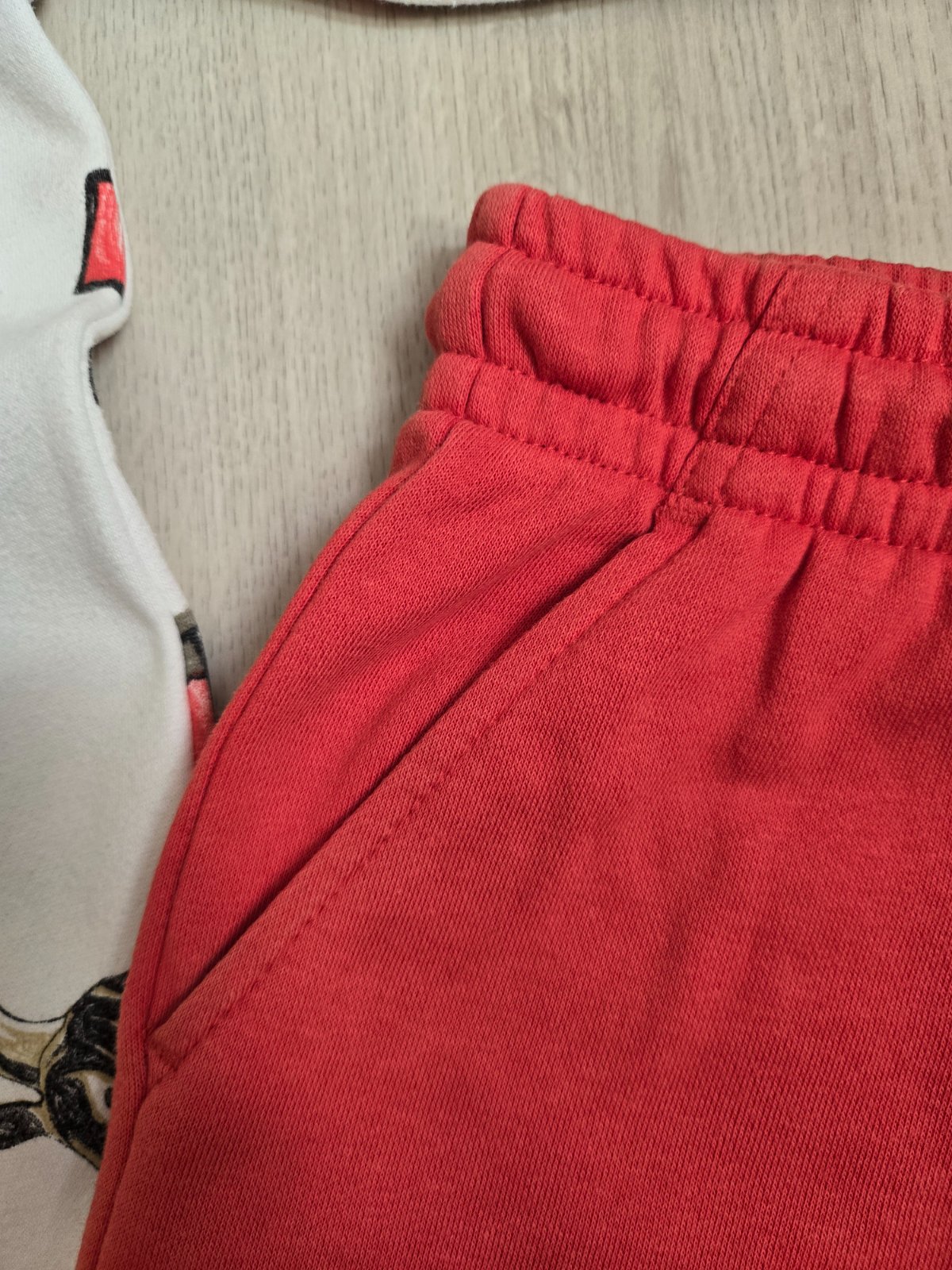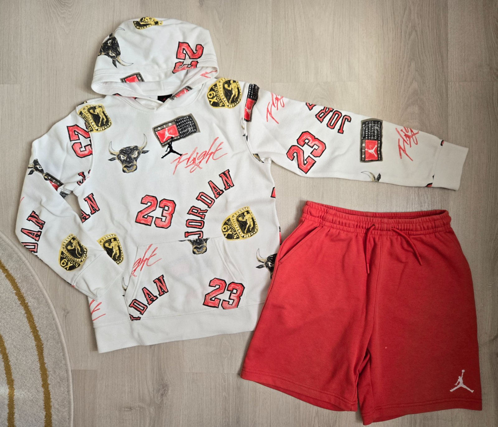 Predávam krásnu súpravu M. Jordan. Je v 100% stave a je to 100% bavlna. Cena a predaj len spolu. Je trendová a štýlová. Úžasné farby, dizajn a potlač. Mikina má kapucňu a klokanie vrecko a kraťasy dva predné bočné vrecká a jedno zadné. Vrelo odporúčam, je naozaj krásna. Rozmery mikina: dl.59cm, šírka 2x45cm, rukáv 53cm. Veľkostne sa dá nosiť od 146 do 164. Kraťasy rozmer: pás 2x33cm, dĺžka 43cm.