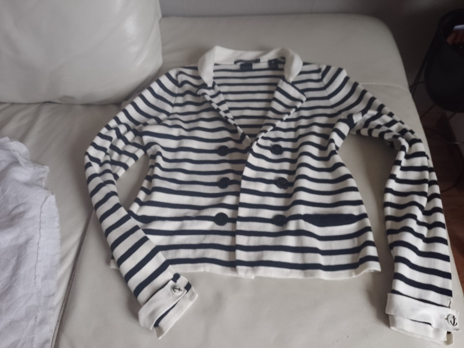 Značkový svetrík,kabátik drahšej značky malo noseny bez poskodenia,uplet poddajne zaujímavý kúsok,dĺžka 54cm,šírka pod pazuchami 47x2cm povolí dosť pruzi rukáv 65cm.pov.cena vysoká.