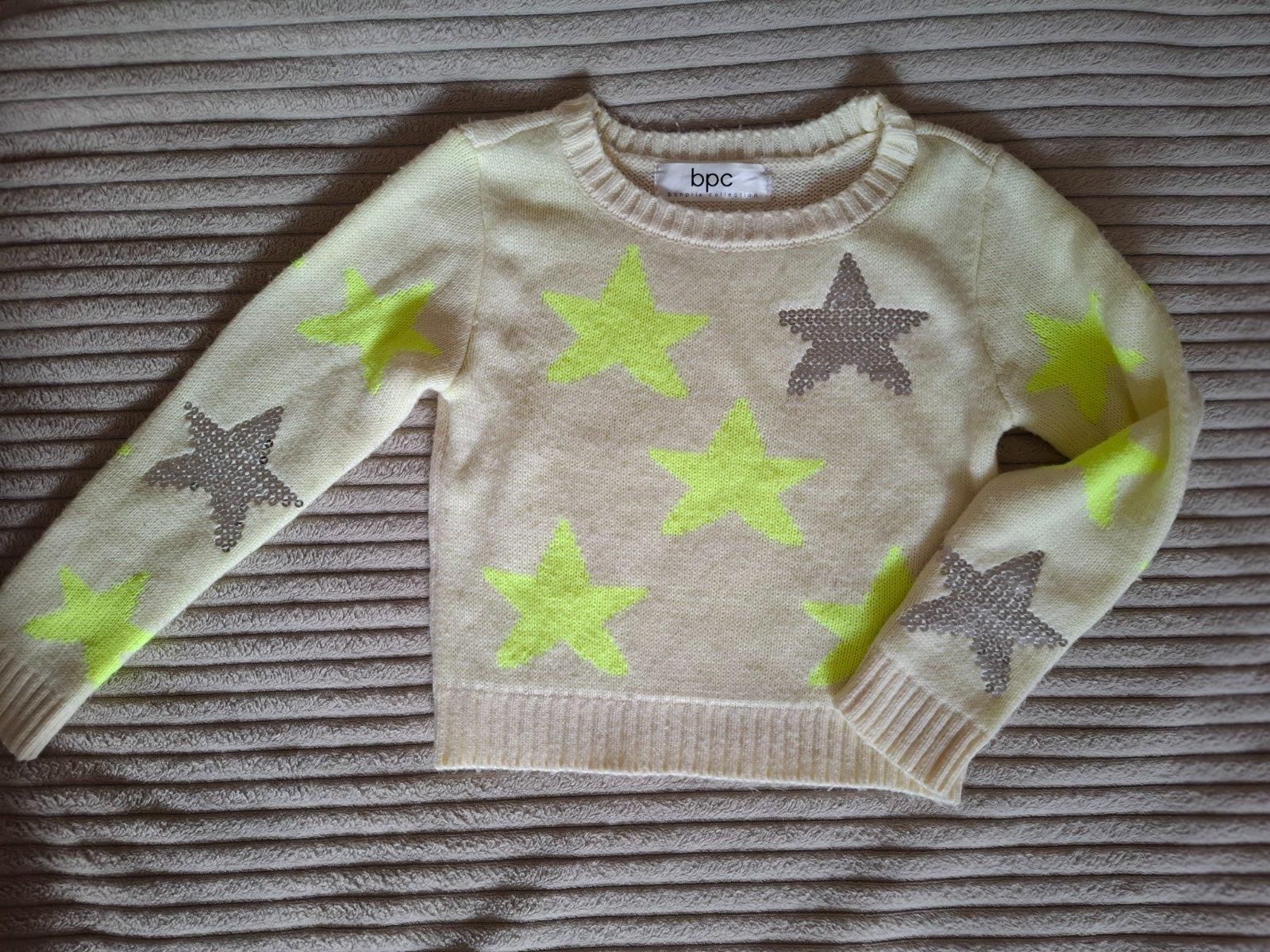 Krásny, kvalitný moderný svetrík - hviezdičky neónové, niektoré glitrované. Bez poškodení