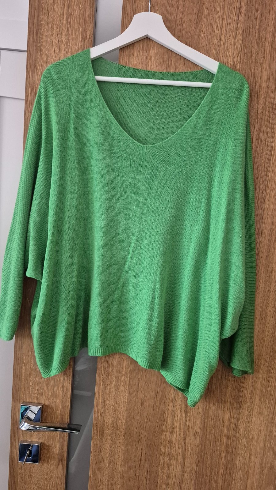 Predam nitovy oversize pulover,ma peknu zelenu farbu,na letne dni super priedusny, dlzka 66cm sirka 160cm,povodna cena 28 nova 13,5 vratane postovneho a balneho,platba vopred na ucet