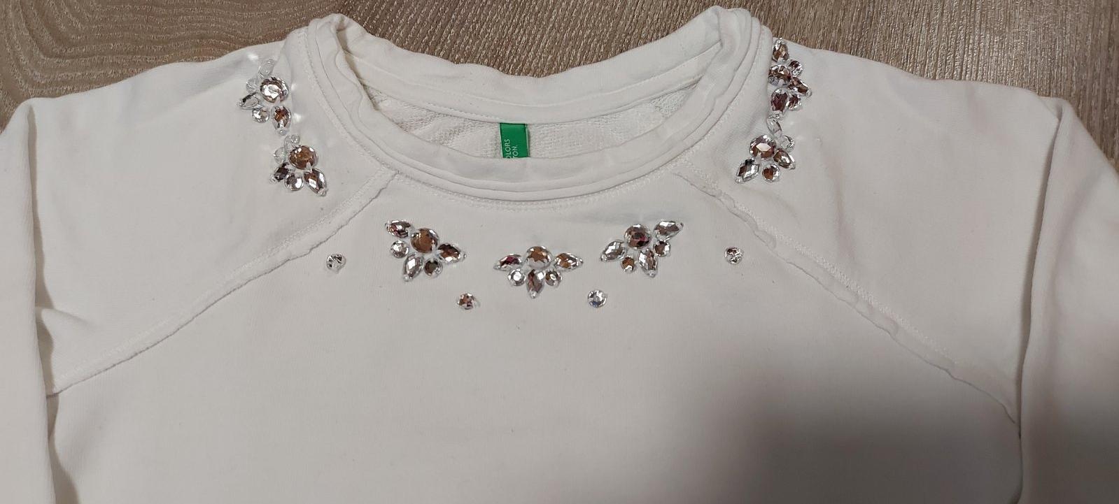 Predam mikinu v top stave značka Beneton veľkosť 128/134 so zlatým trblietavým nápisom Celkova dĺžka 45 cm Dĺžka rukáva 60 cm