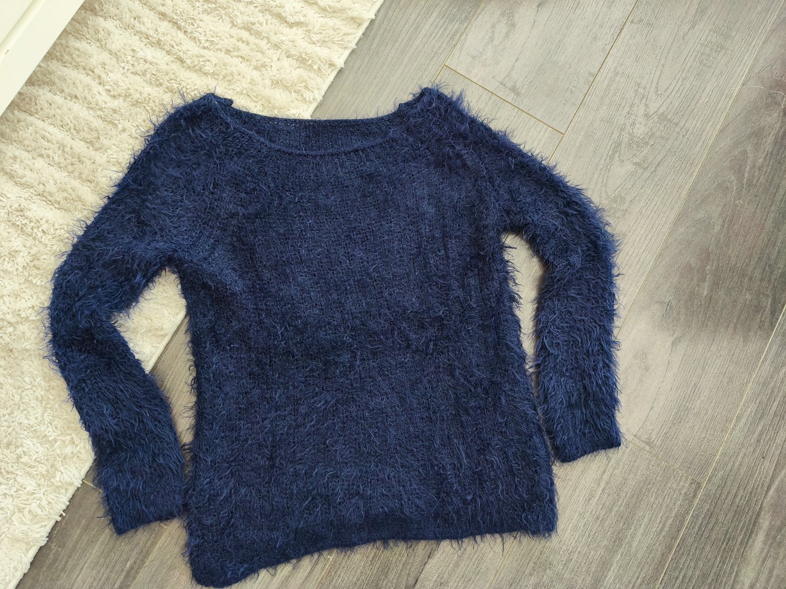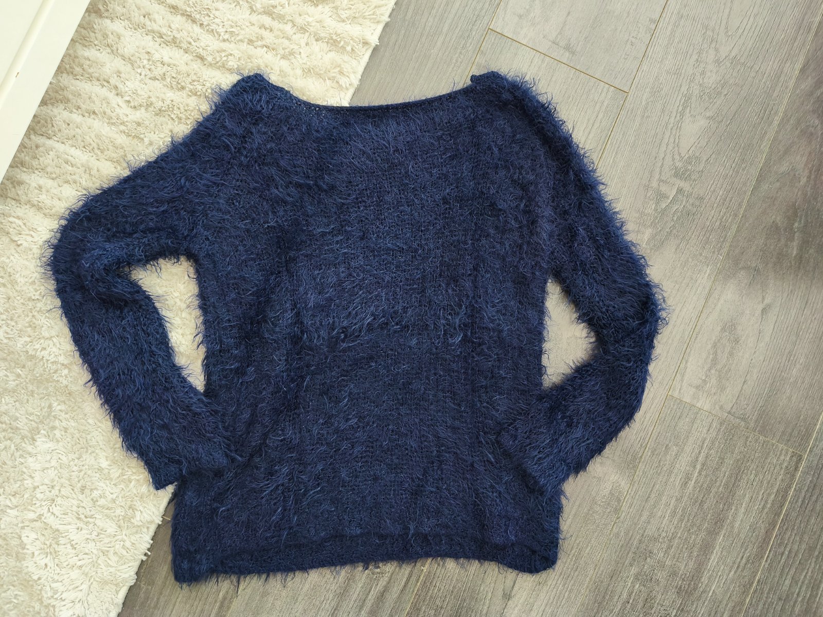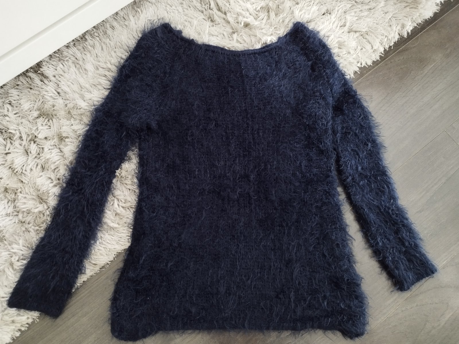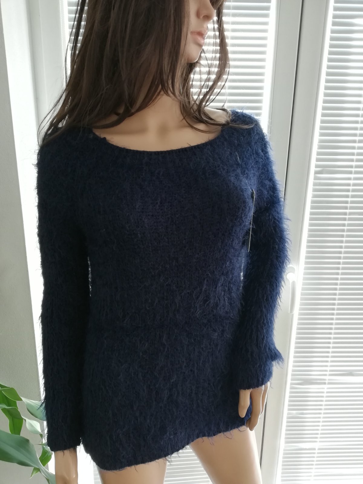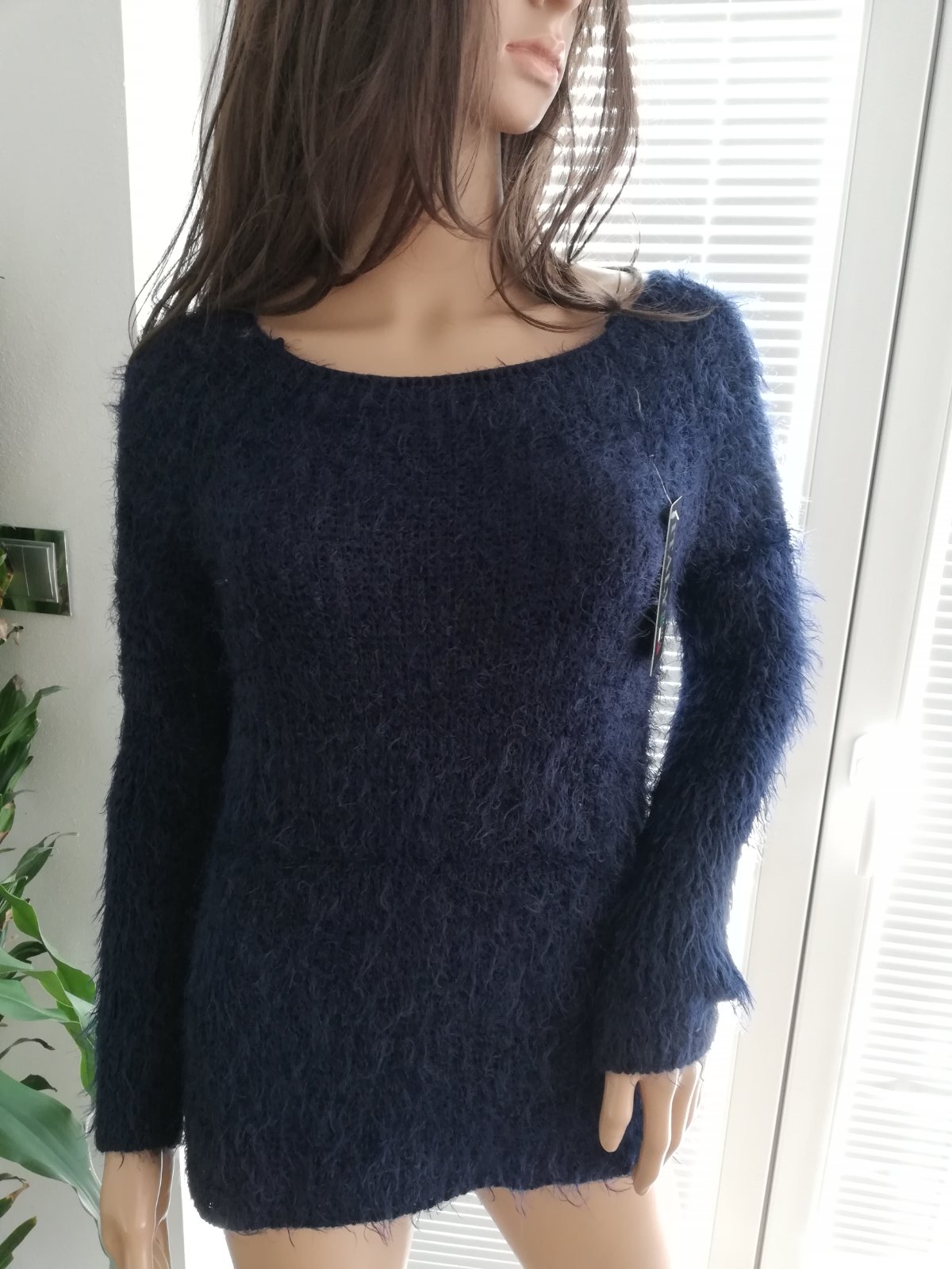 Výpredaj. Modrý teplý pulóver. Veľ. Uni sedí na S/36
