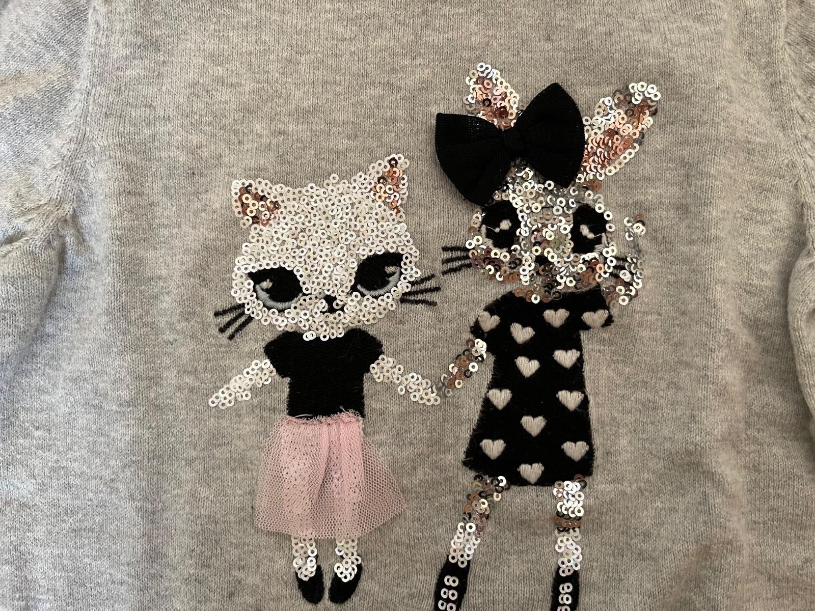Bavlnený bledosivý svetrík s mačkou a zajacom