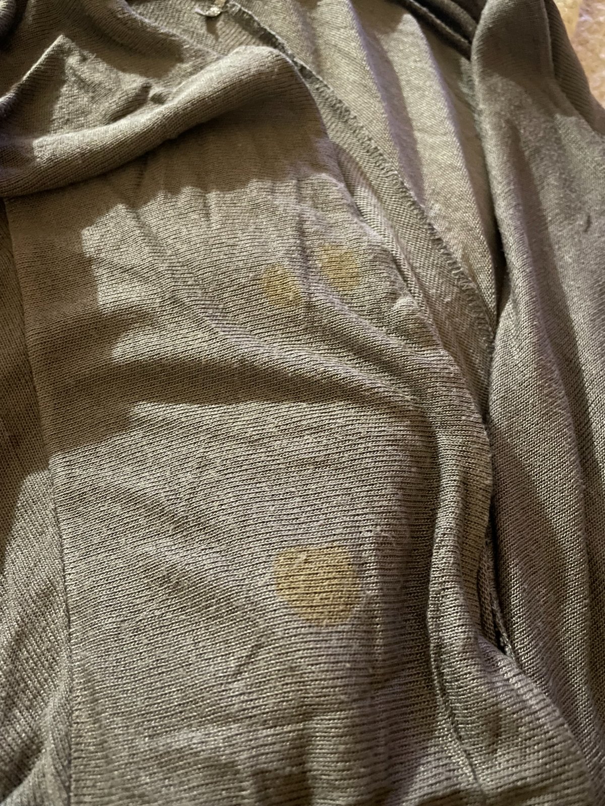 Tenší šedý kardigan, veľkosť M/L. Vpredu má dva fľaky - neviem či idú vyprať, neskúšala som.