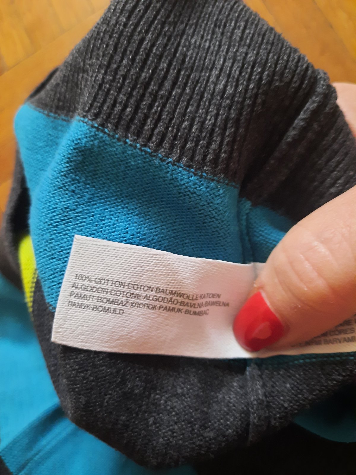 Predam tenky pulover s tyrk.tmavomodrymi.pruhmi, bez poskodeni