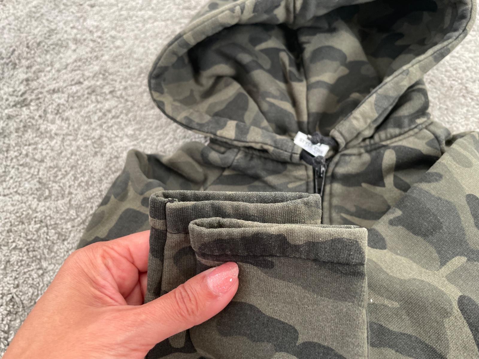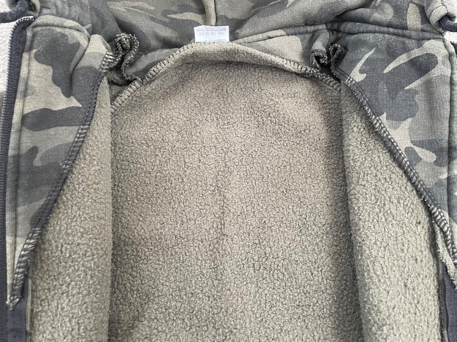 Mikina predĺžená s kapucňou teplá maskáčová 92/98