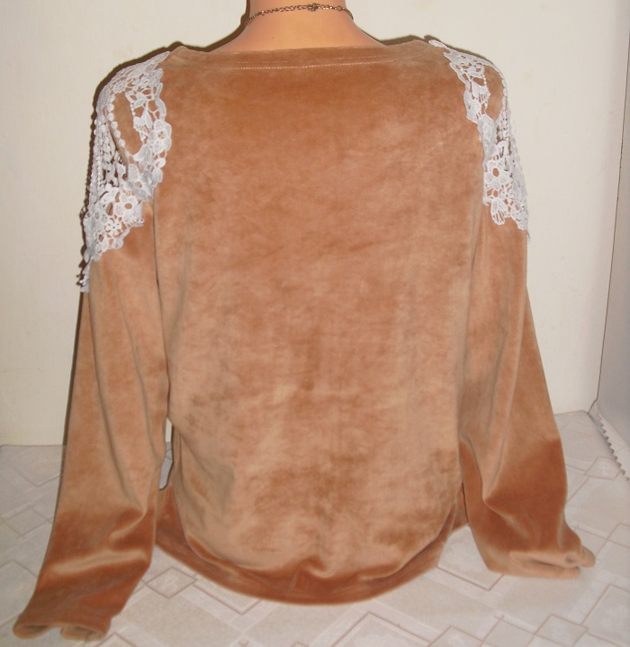 predam nadherny svetrik mikinkovy , elegantny, je makucky ako plysovy na dotyk, prijemny na telo. velkost ide na l. je nadhernom vybornom stave, zdobeny na ramenach, teplucky. sirka 54 cm x 2, dlzka cca 61 cm.