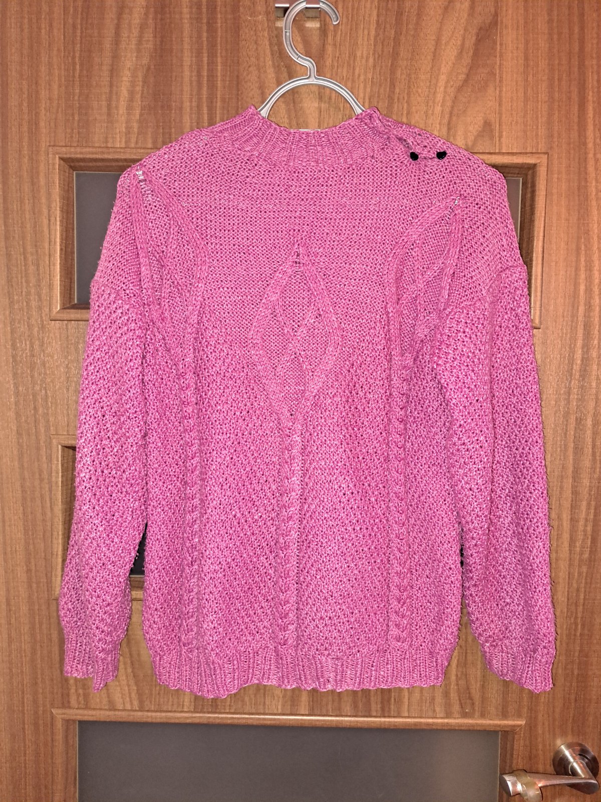 Krásny štrikovaný štýlový svetrík so srdiečkovými gombičkami