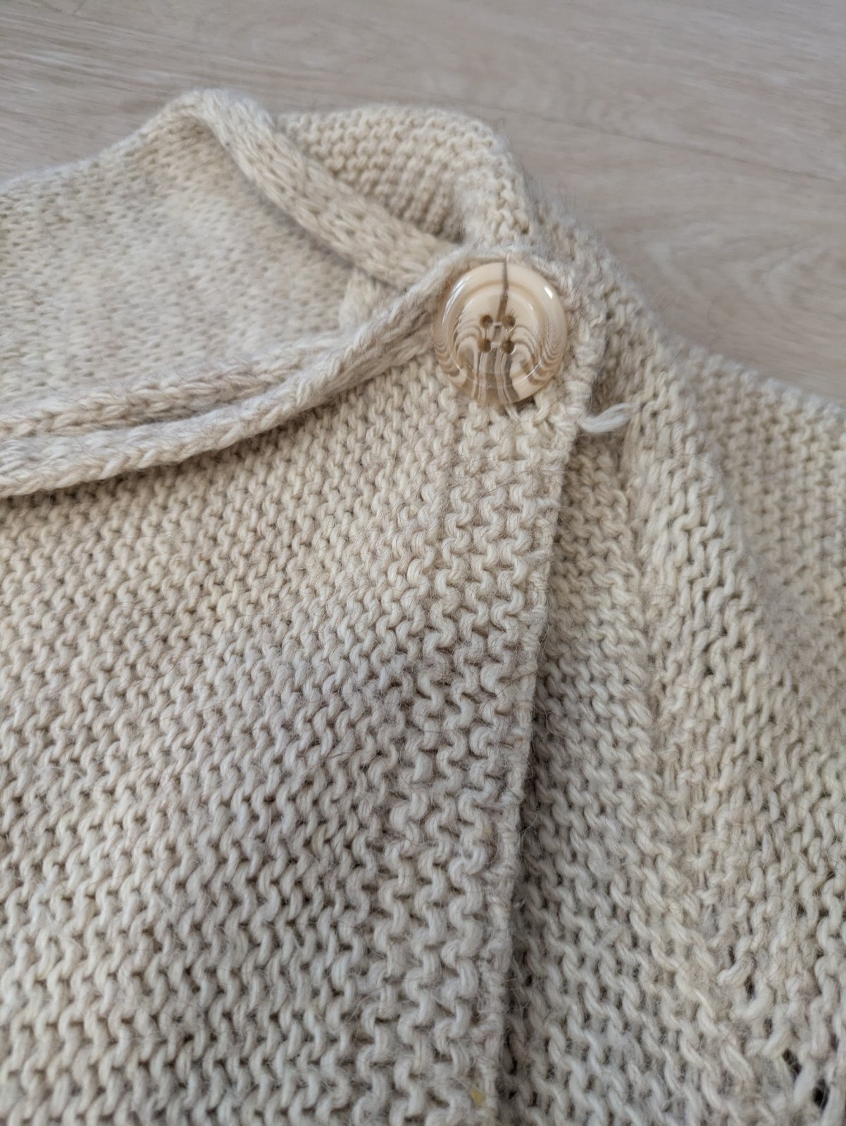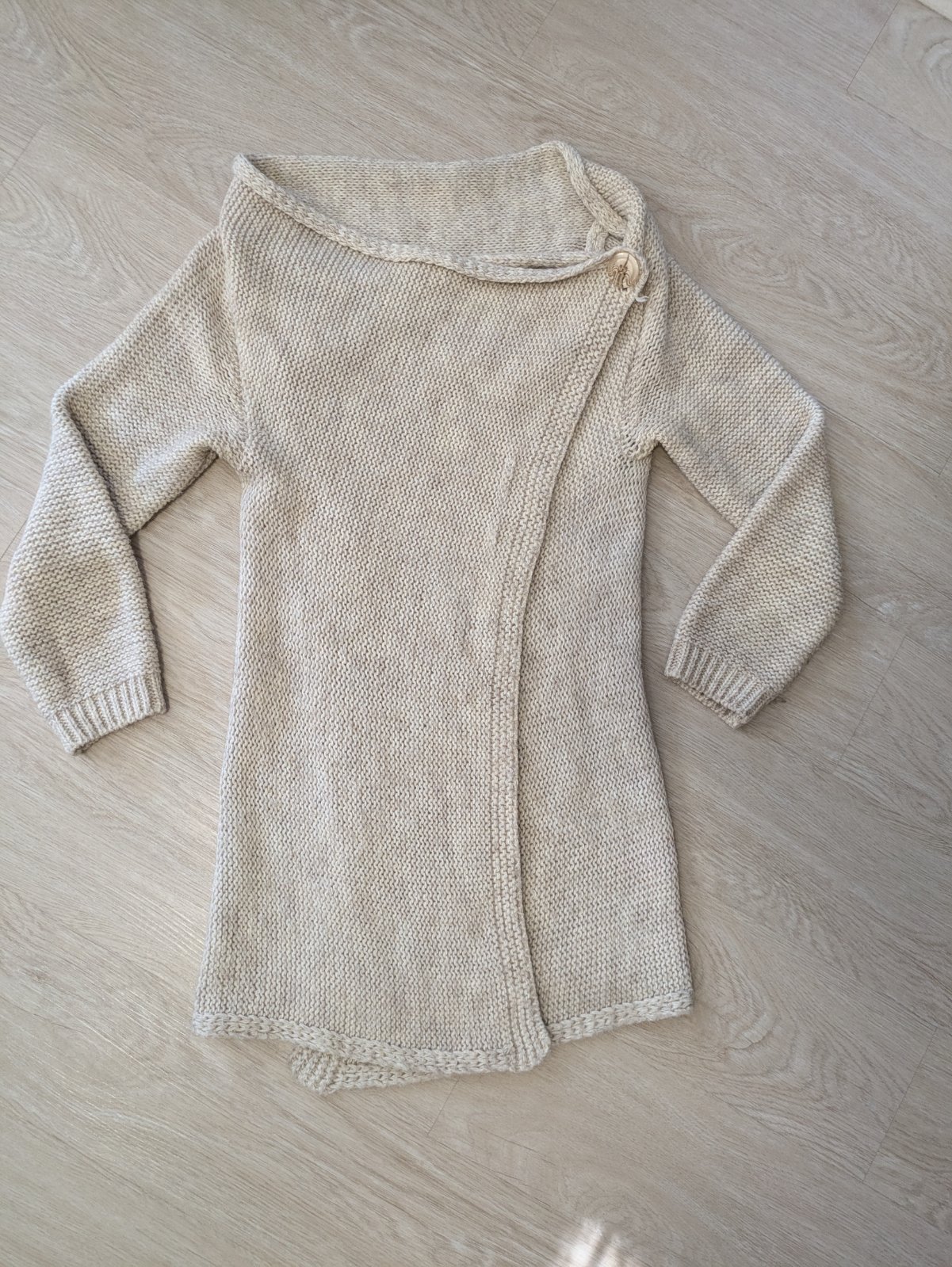 Makucky svetrík, zapínanie na preklad jeden gombík.