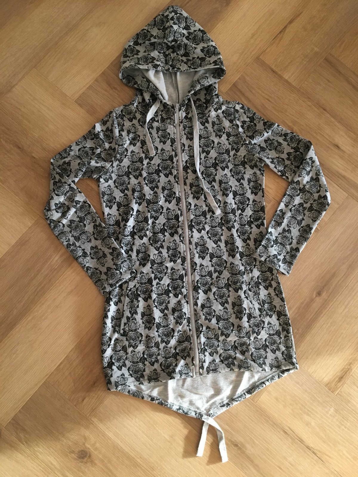 Predám dámsku dlhu mikinu s kapucňou, s kvetinovou potlačou. V prednej časti sú umiestnené dva vrecká. Je bez akéhokoľvek poškodenia a opotrebovania, keďže je nosená minimálne.