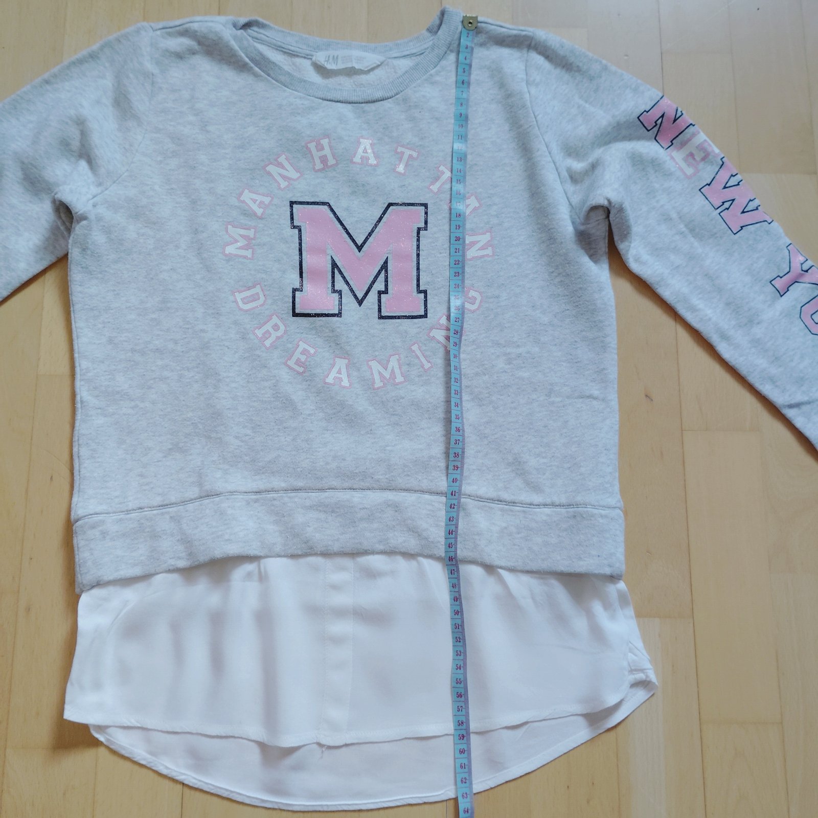 Dievcenska mikina H&M vel. 146/152, svetloseda melirovana, dlzka 54 cm, rukav od krku 63 cm, ma zmolceky - daju sa odstranit