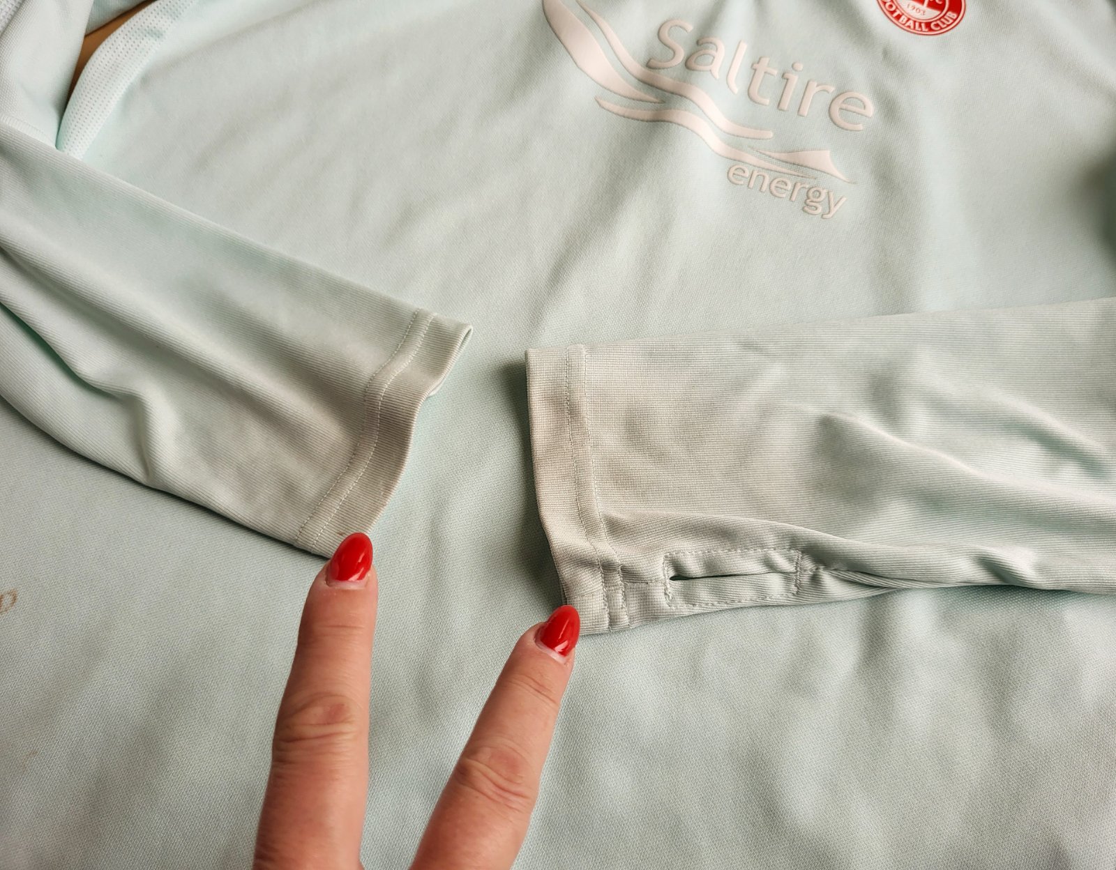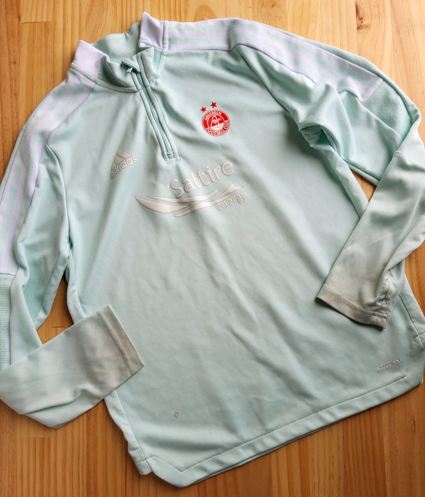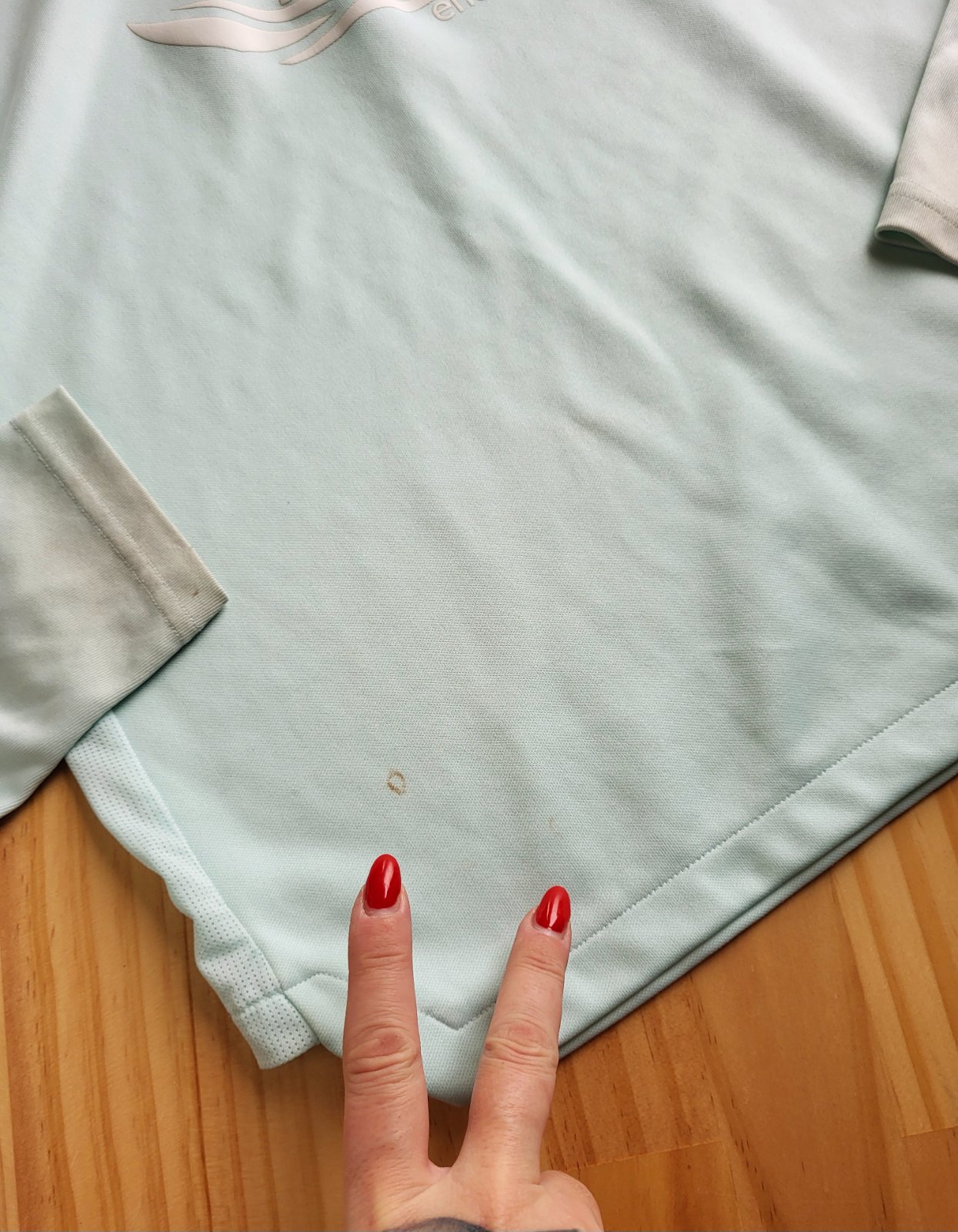 dobrý stav, miestami fliačiky a ušpinenie na koncoch, na koncoch rukávov s otvorom na palec, napriek nedokonalostiam stále pekná, materiál nepoškodený, bez zatiahnutí, prepracovaná, kvalitný materiál, poštovné doporučene 3€