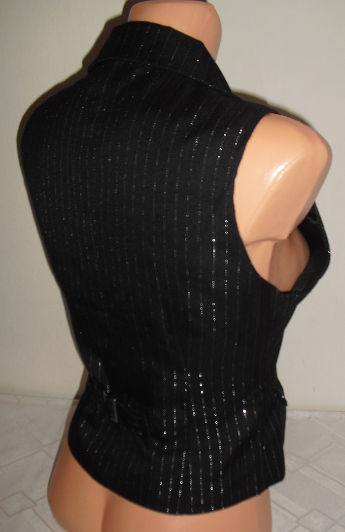 predam nadhernu luxusnu vesticku, bussines k bluzocke sa nosi aj samostatne. je nadhernom vybornom stave, kvalitny material. vacky ma bokoch a zapina sa na gombicky. znackova , velkost uvedena s. sirka 45,5 cm x 2, dlzka od vrchu zamien dole 47,6 cm . v zadu sa da zuzit podla postavicky polohovatkom.
