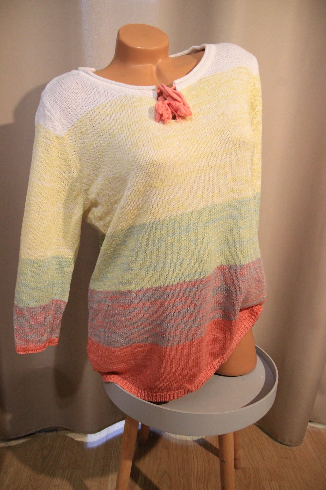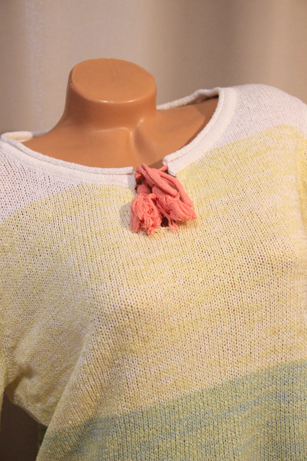 Farebný pletený sveter, veľkosť L/XL. Top stav. 3/4 rukávy.
