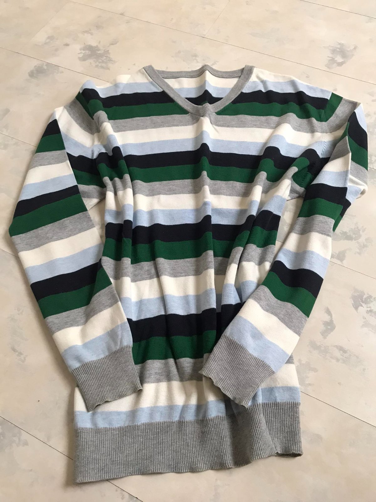 kvalitný tenký bavlnený pulóvrik,tenší, švédskej výroby,krásna kombinácia farieb,dlžka celkom = 70 cm, dlžka od pazuchy dole = 45 cm, ramená = 16,5 cm, rukáv = 65 cm, šírka meraná pod pazuchou = 62 x 2 cm