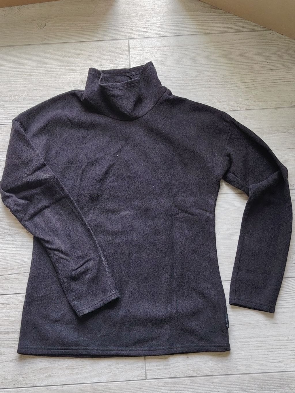Raz oblečený čierny flísový roláčik. Nie je moc hrubý. Farba čierna, kúpené v Decathlone.