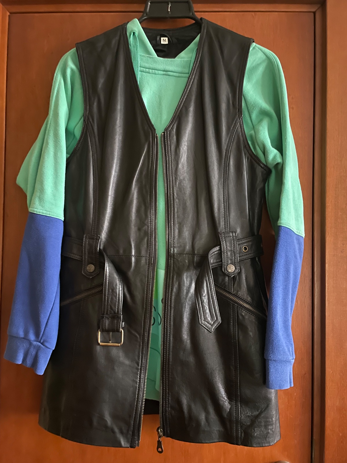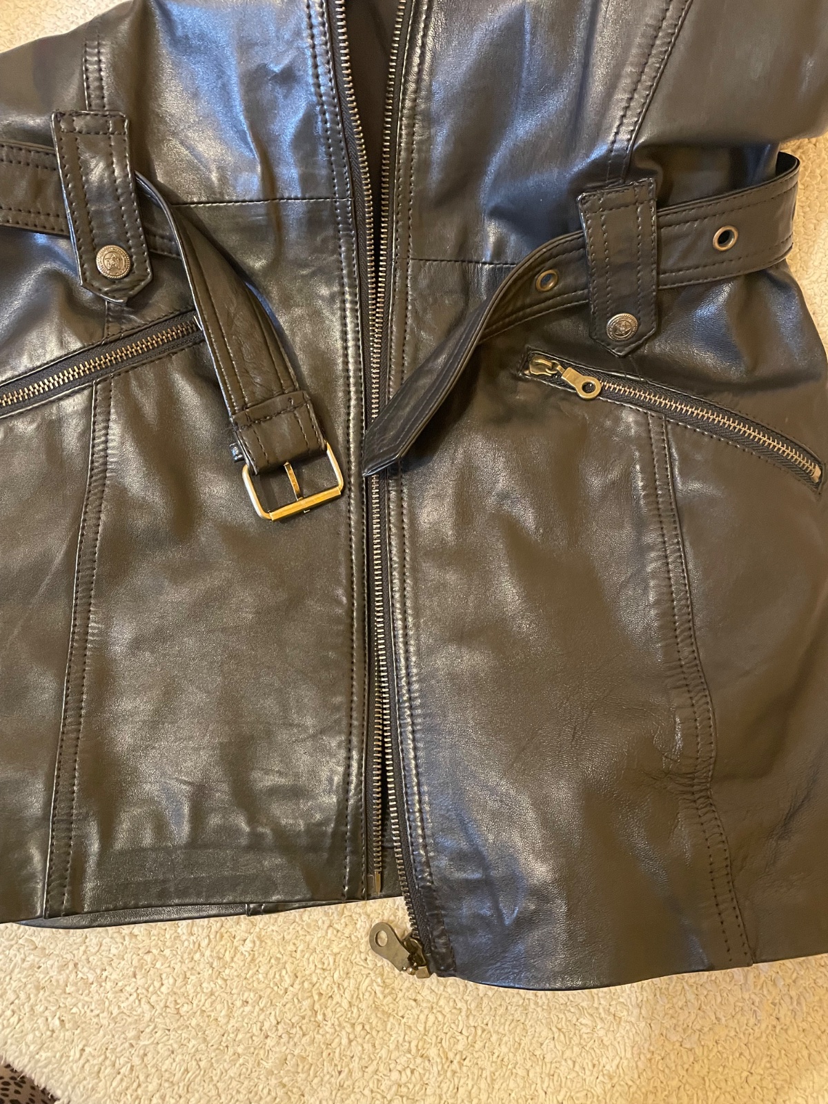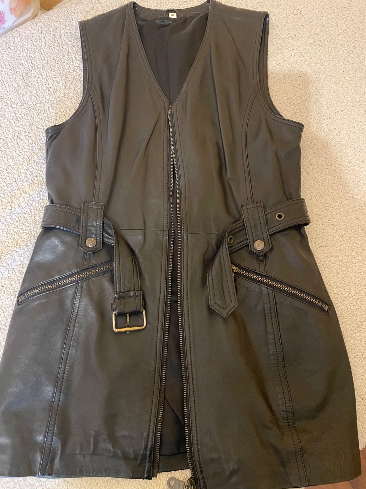 Super vesta, prava koza, zial zip nefunkcny ale kludne sa da nosit aj otvorena:-) velkost s-m