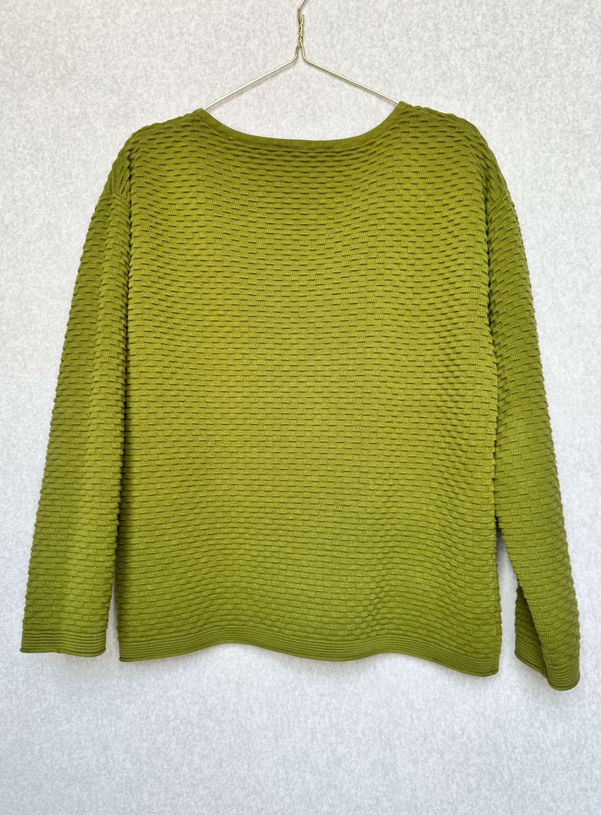 Príjemný bavlnený pulovrík zo 100% bavlny vo sviežej zelenej farbe. Pranie v pračke 40°C. Pulovrík som odfotila pri viacerých svetelných podmienkach, reálna farba je trošu tmavšia ako na fotkách s tmavým pozadím. Vo veľmi peknom stave, bez poškodení.