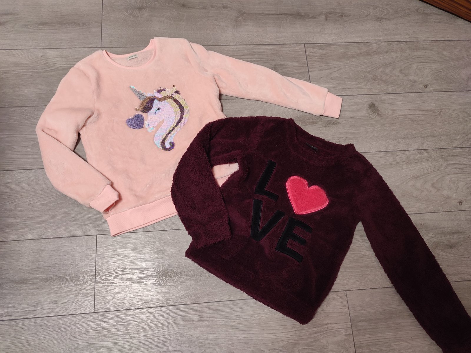Velkost 146/152 teple mikina malo nosene, pekne su, cena spolu 5€ kus 3€+ doporucena posta