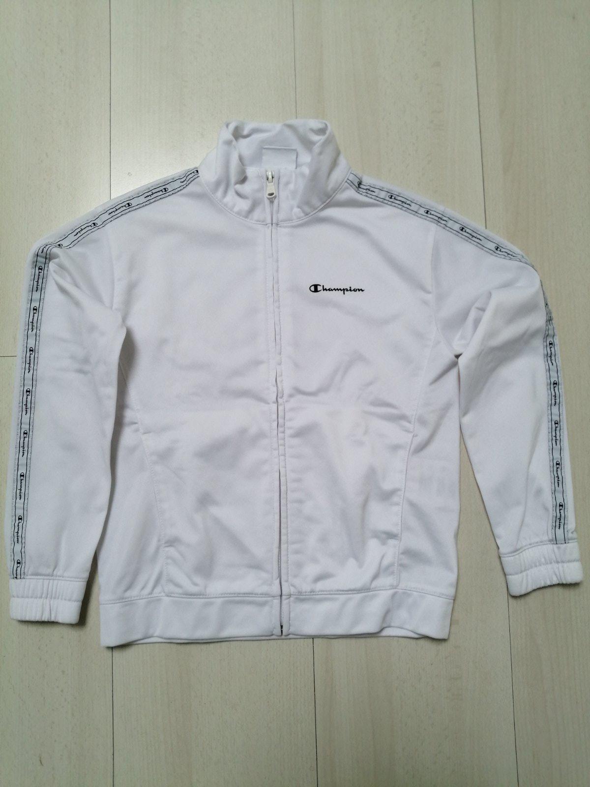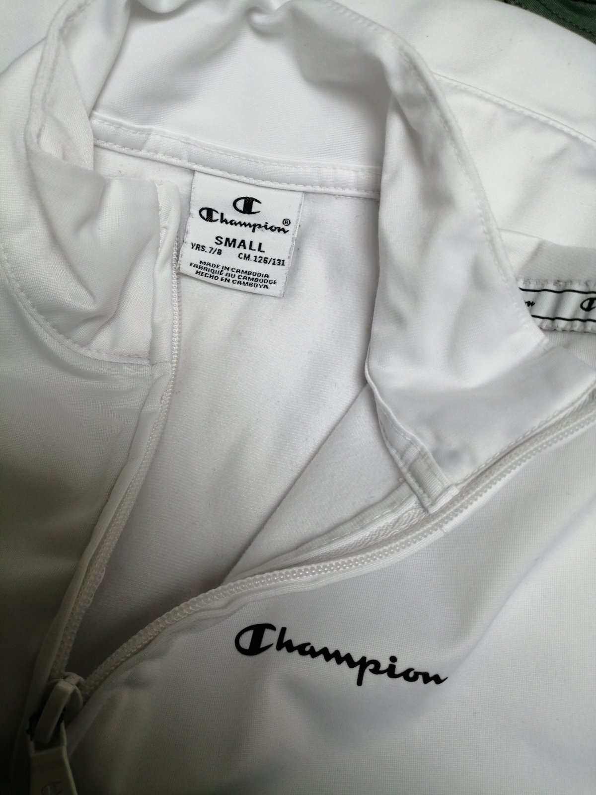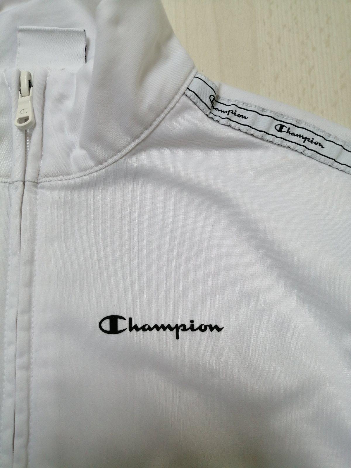 Krasna znackova mikinka Champion biela, oblečená len príležitostne /2x/, obvod hrudnika je 78 cm, rukavy 44 cm a dĺžka je 48 cm