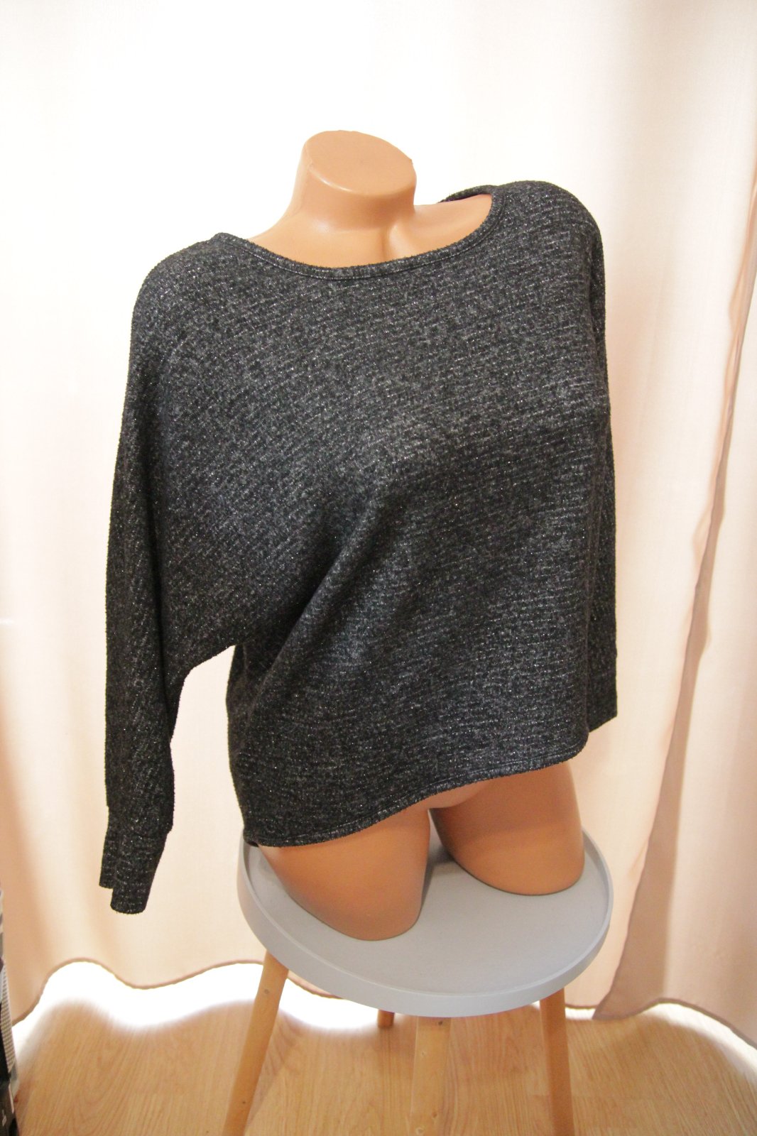Čierno šedý sveter, oversize strih. Veľkosť M/L. Nosený bez poškodení, pár žmolkov.