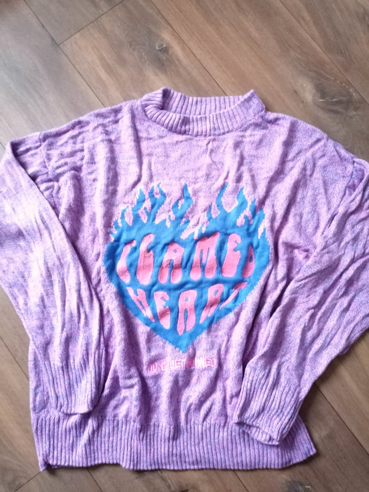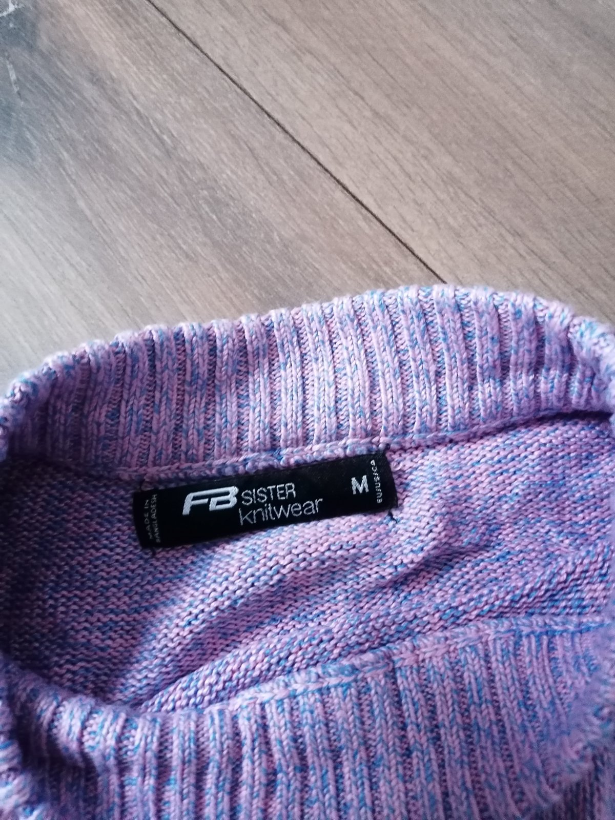 Oversized sveter,na spodku hrubý patent /guma. Kombinácia bledoruzovej a modrej farby. Pár x oblečený na doma. Dĺžka 63 cm, šírka 58 cm.